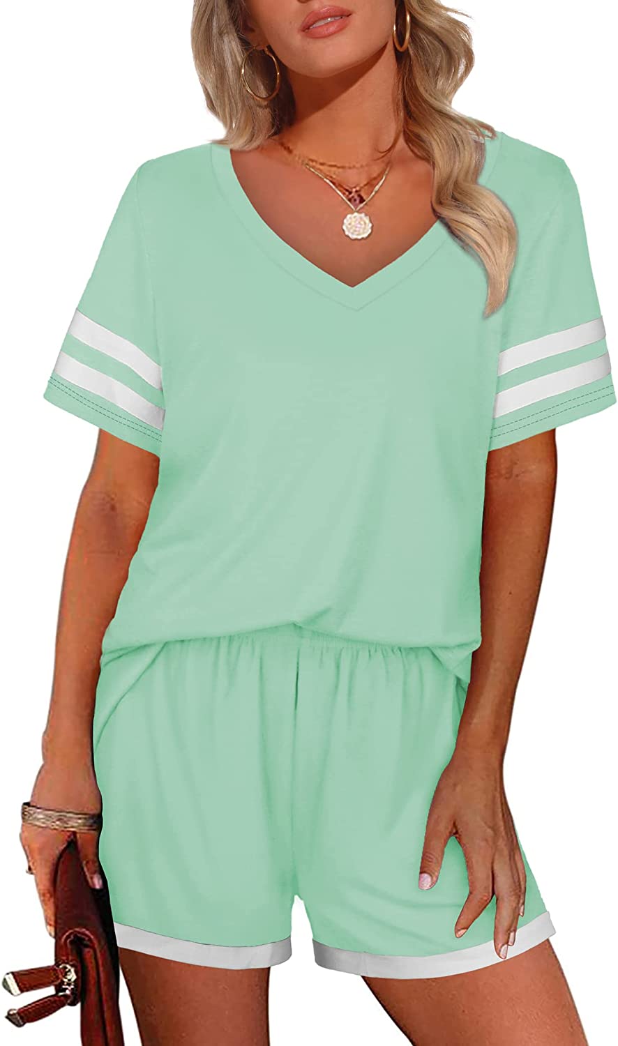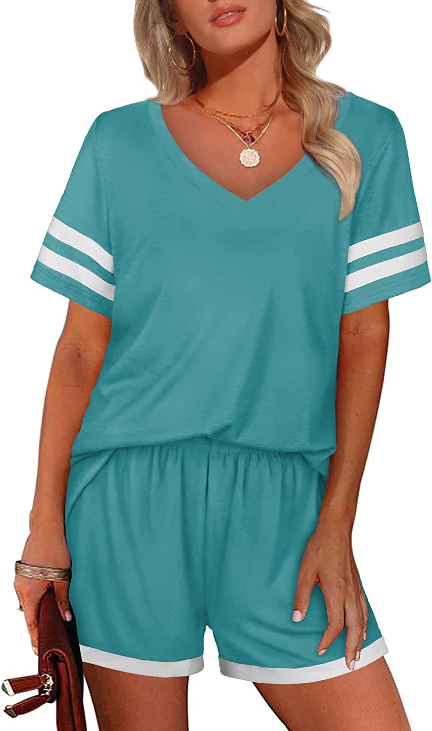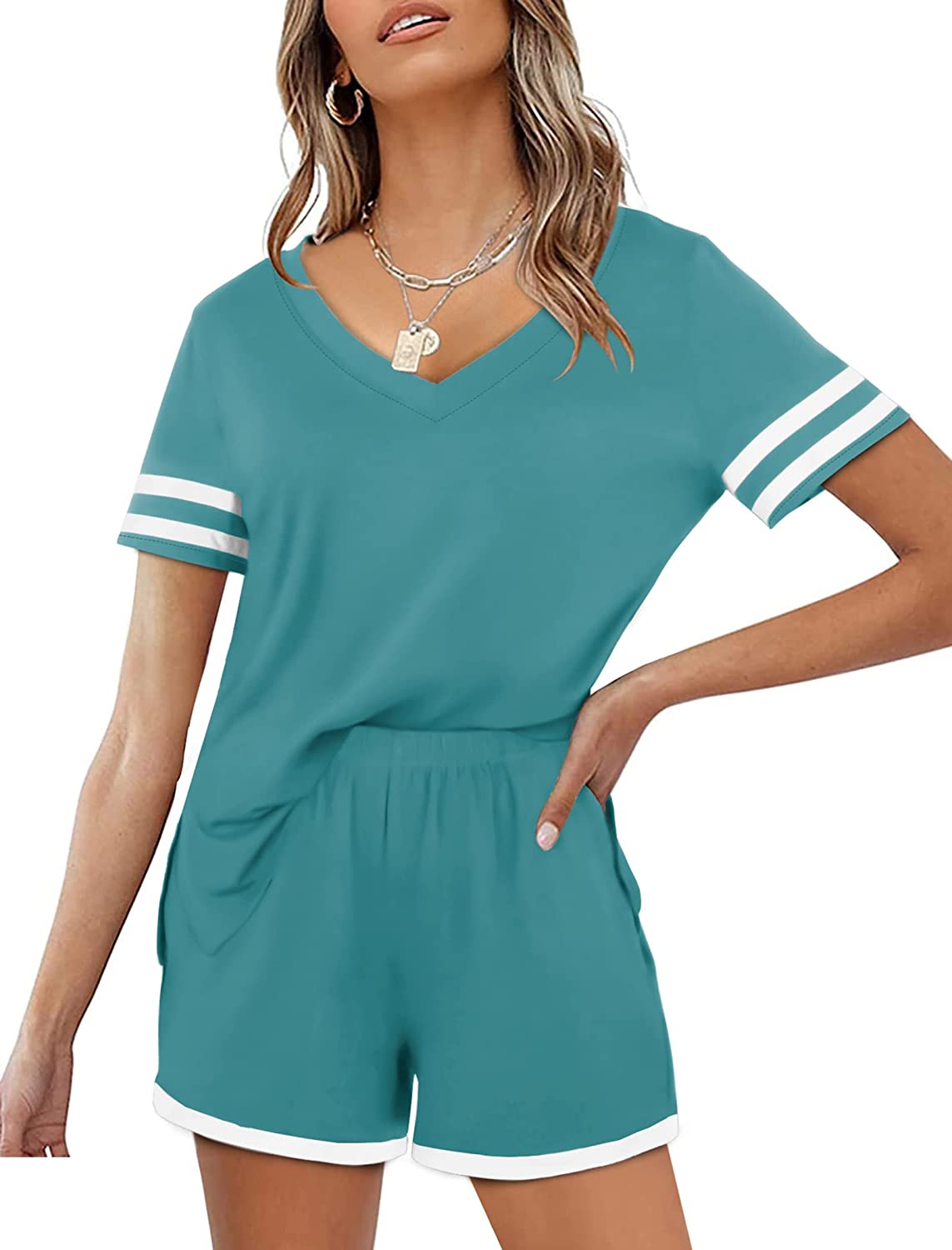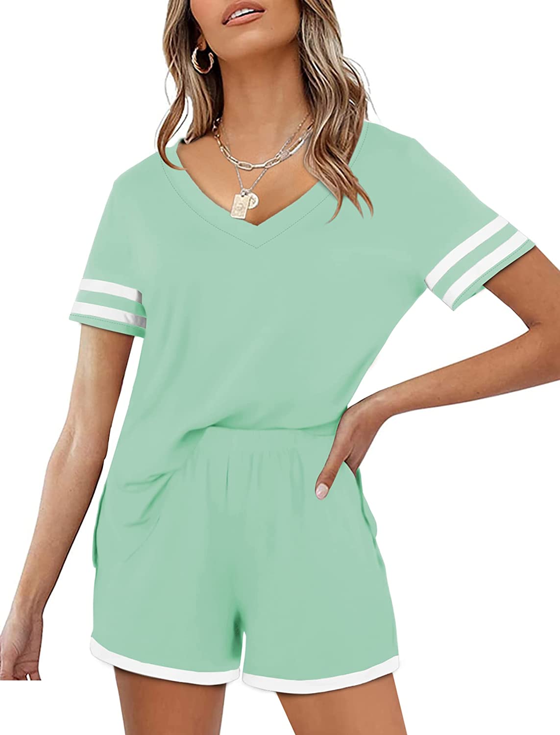Aloodor Two Piece Outfits for Women Summer Short Sets with Pockets Lounge Set