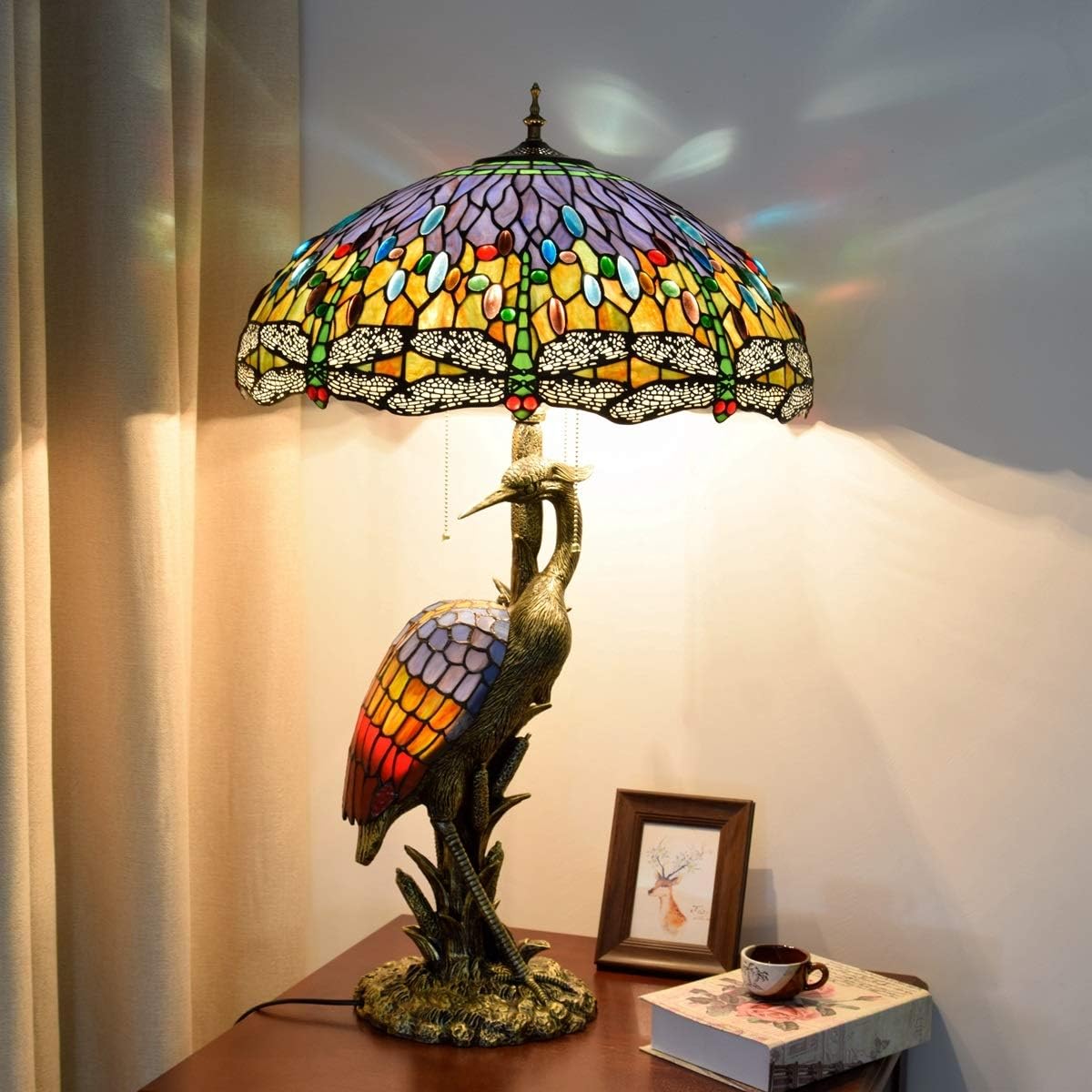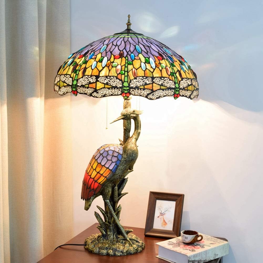 Handmade Stained Glass Table Lamp 18" Tiffany Style Large Table Lamp Dark Red Blue Dragonfly Desk Lamp Creative Antique Light Base for Living Room Study Bedroom Table Lamp (Color : Female)