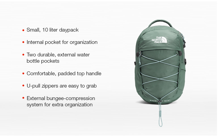 BOREALIS CLASSIC. Our much-loved Borealis pack has been scaled down for city life. This 10-liter version features easy-access organization, our super-comfy FlexVent suspension and a proud recommendation from the American Chiropractic Association.