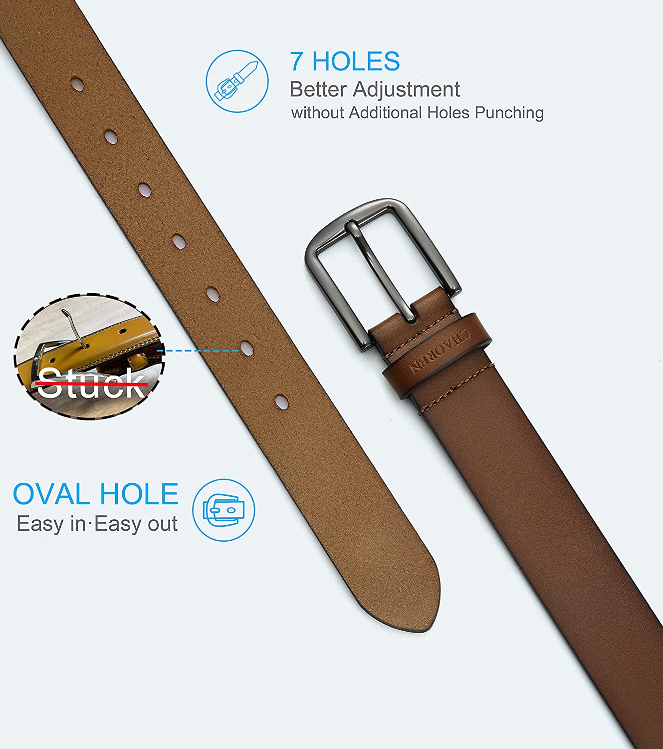 EASY IN EASY OUT - Unique 7 oval holes, make the brown belt more suitable for the waist size and won't stick like regular circle holes.