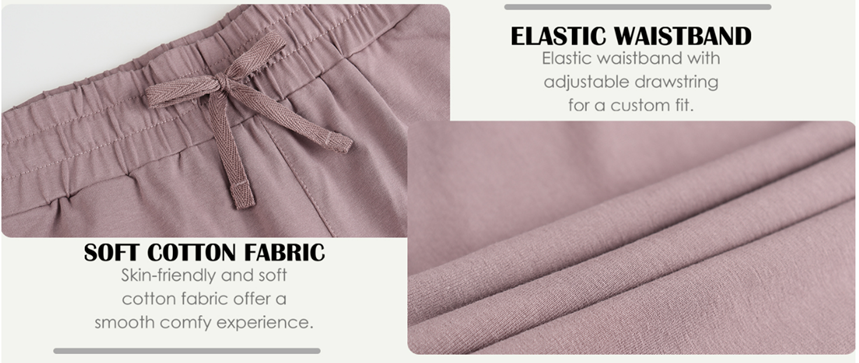 Fabric: The cotton shorts made of skin-friendly, lightweight and soft fabric offers a low-friction, breathable and stretchy experience during lounge.