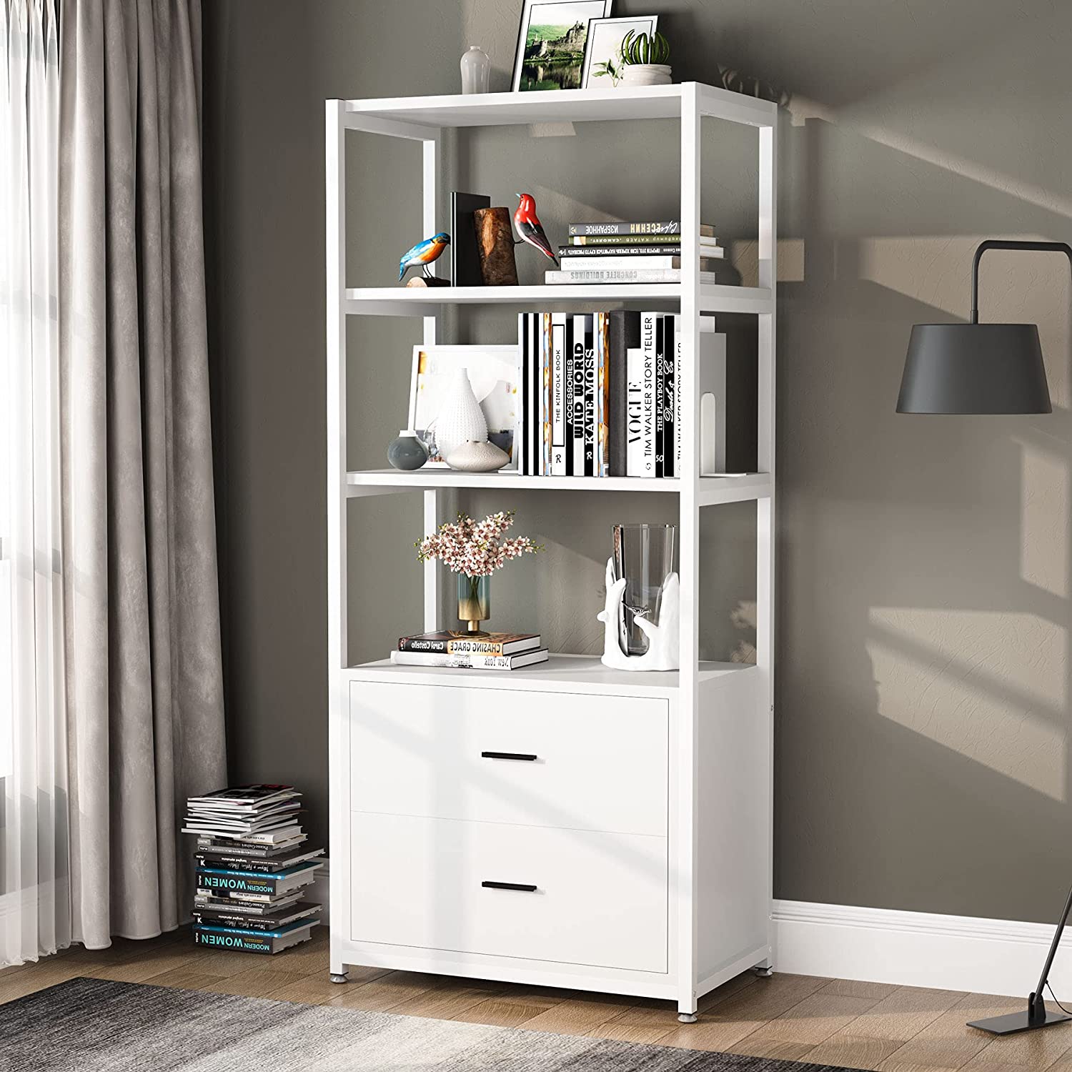 [ 2 Tier-Drawers Storage ] - [Important information: Please check the drawer size before buying. This is not a filing cabinet and can't accommodate A4, F4, letter size and legal sized suspension files.] Designed to meet diversifying storage demands, Tribesigns storage bookcase with 2 tier large drawers provides a private room to preserve your important documents and letters, favorite office supplies