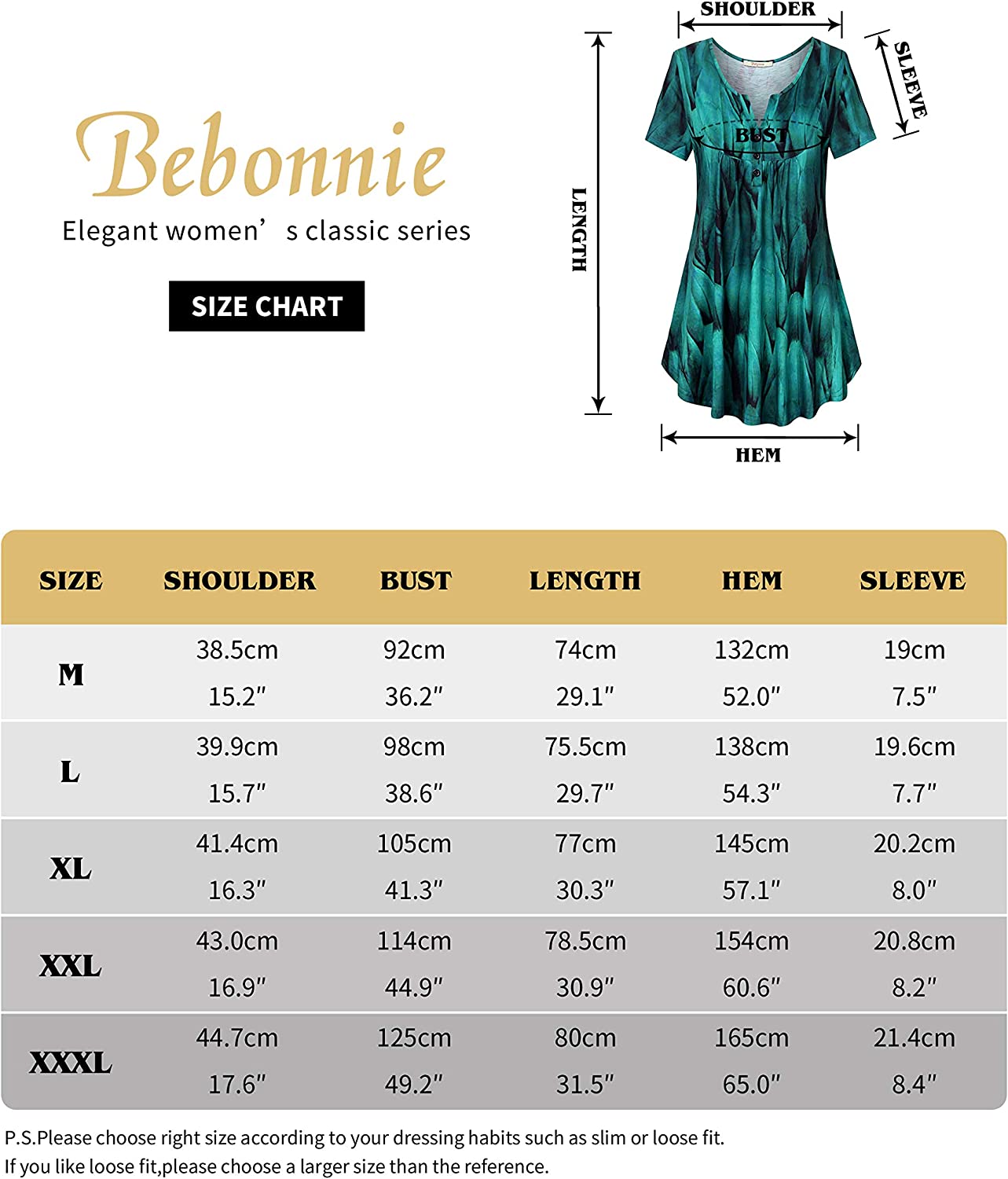 • Bust Size:M 36.2"/92CM,L 38.6"/98CM,XL 41.3/105CM,XXL 44.9/114CM,3XL 49.2/125CM
