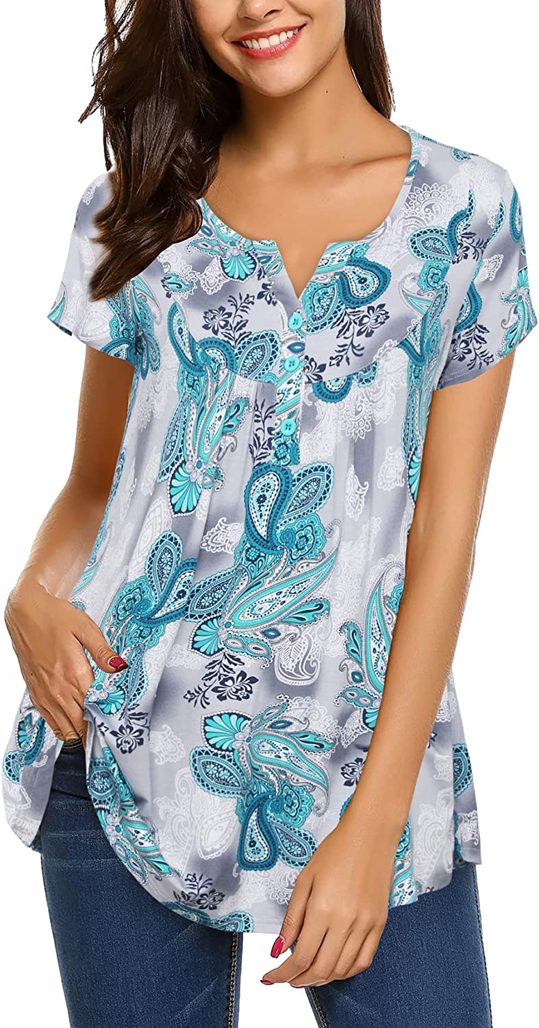 • Features: Henley v neck,Button-up,Paisley pattern or solid color, cute front ruffle and flowy hem can perfectly modify the belly, good length can cover hips and easy to pair with leggings, pants and shorts etc, very casual, soft, lightweight and comfortable