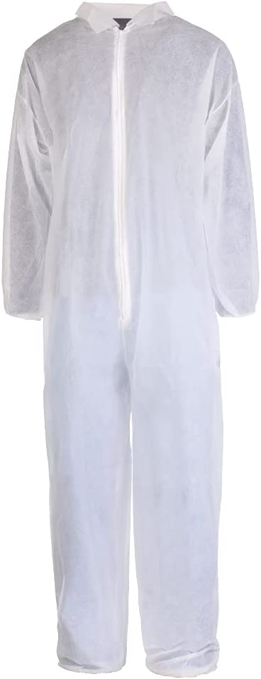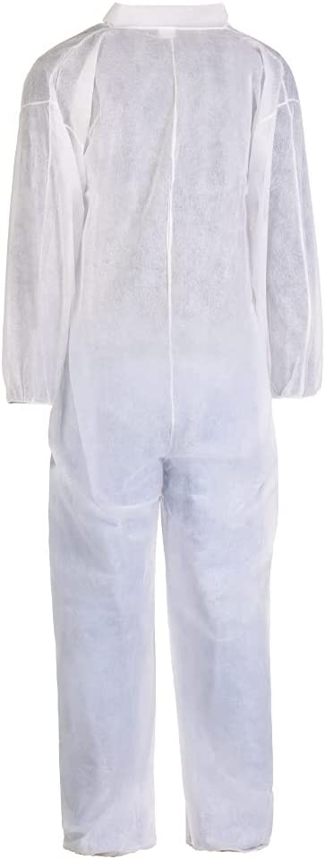 TRONEX 25 Pack Multilayer Nonwoven Disposable Coveralls with Open Ankles & Elastic Cuffs, White Disposable Jumpsuits (Large)
