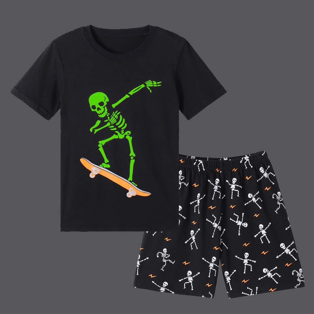 Feature: Special design, glow in the dark. Soft sleepwear top features round neck, short sleeve, pants with elastic waist band, moisture wicking, stretchy, non-slip and painless, easy on/off.