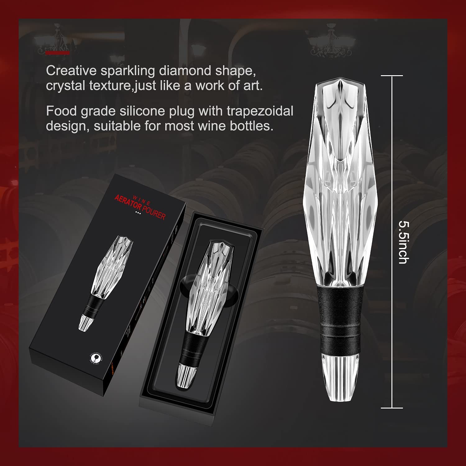 Elegantly Designed - The pouring port is diamond shape. It's not just a decanter, it's a work of art. Our beautiful diamond shape brings elegance and sparkle to your everyday life.Its elegant design will add a level of refinement to your wine drinking experience and is the perfect gift for wine lovers.