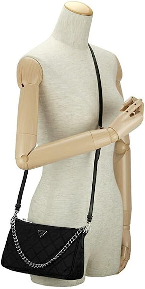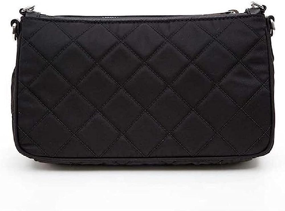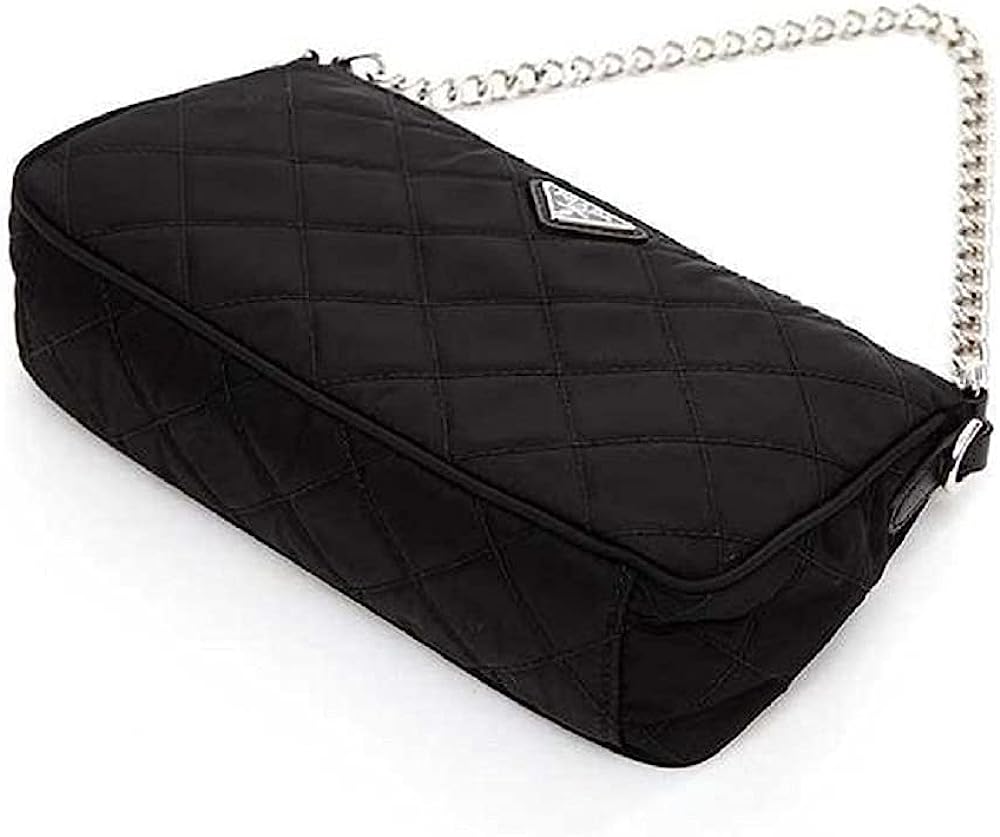 Model number: 1BH026. Quilted nylon material. Silver-tone hardware. Zipper closure. Signature Prada triangle logo.