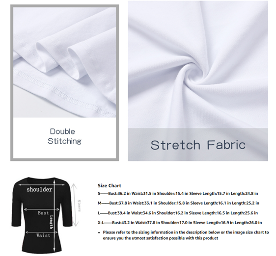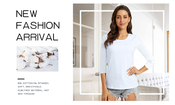 Basic 3/4 sleeve t-shirt with crew neck,thick material, Not see-through