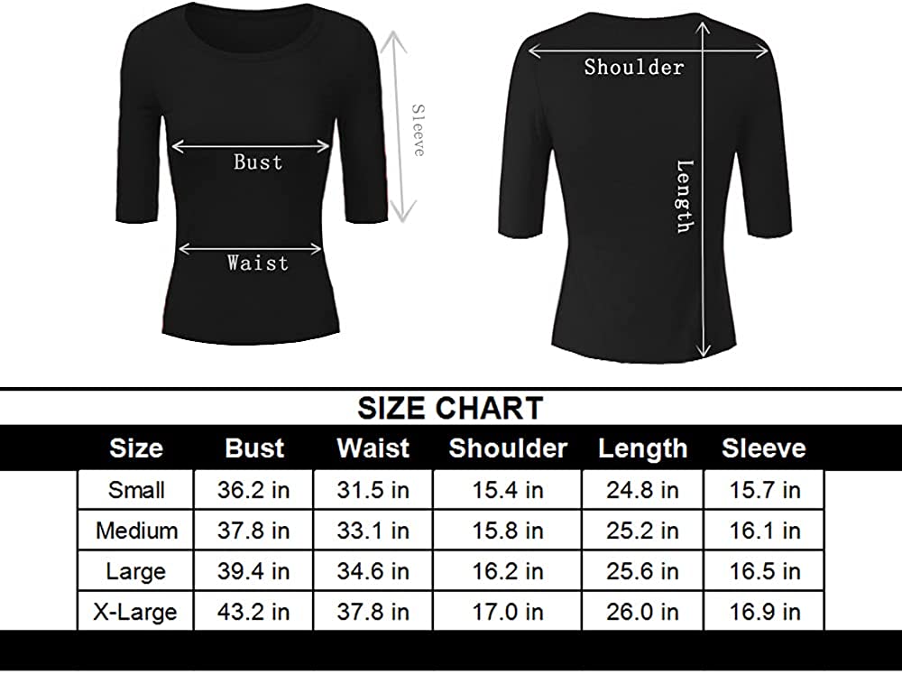 VIIOO Women's Basic 3/4 Sleeve Crew Neck T-Shirt Casual Solid Slim Cotton Top