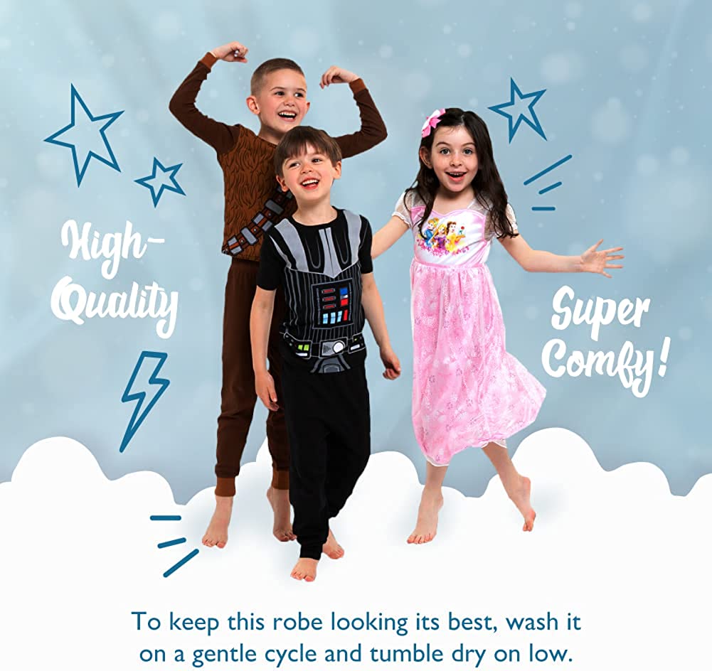 EASY CARE: Made from 100% polyester with expert stitching for added durability, this Disney robe will withstand many nights of bath and bedtime adventures. For best results, wash it with mild detergent on a gentle cycle and tumble dry on low.