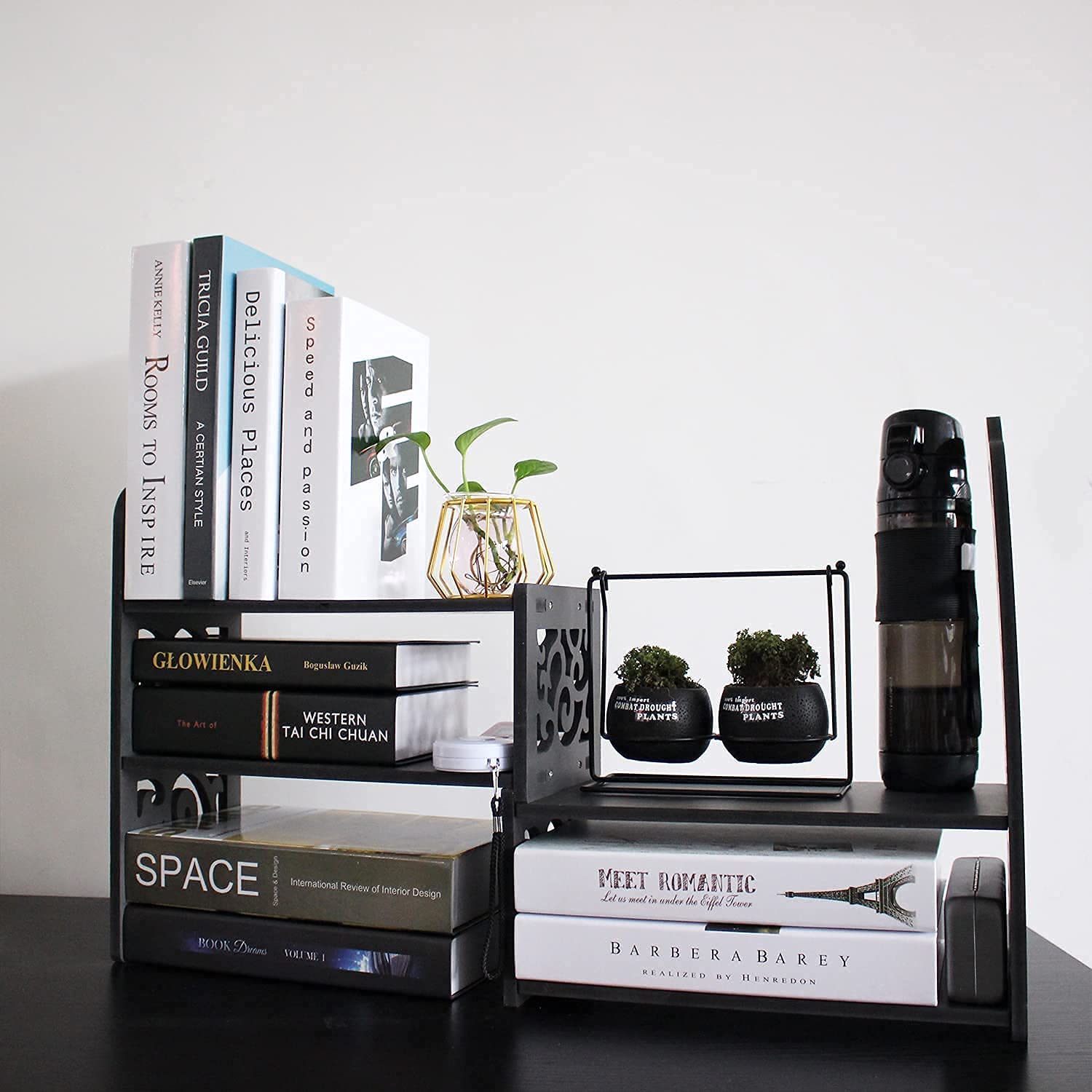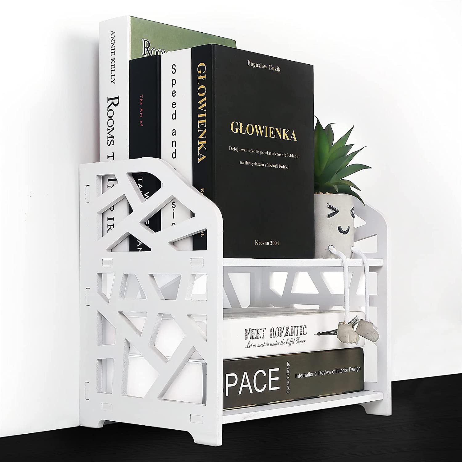 ?Give your books a home: Is there nowhere to put your books, after a while, the book will fall apart, then your books become crumpled, with this small desktop bookshelf, your books will be able to maintain a new look
