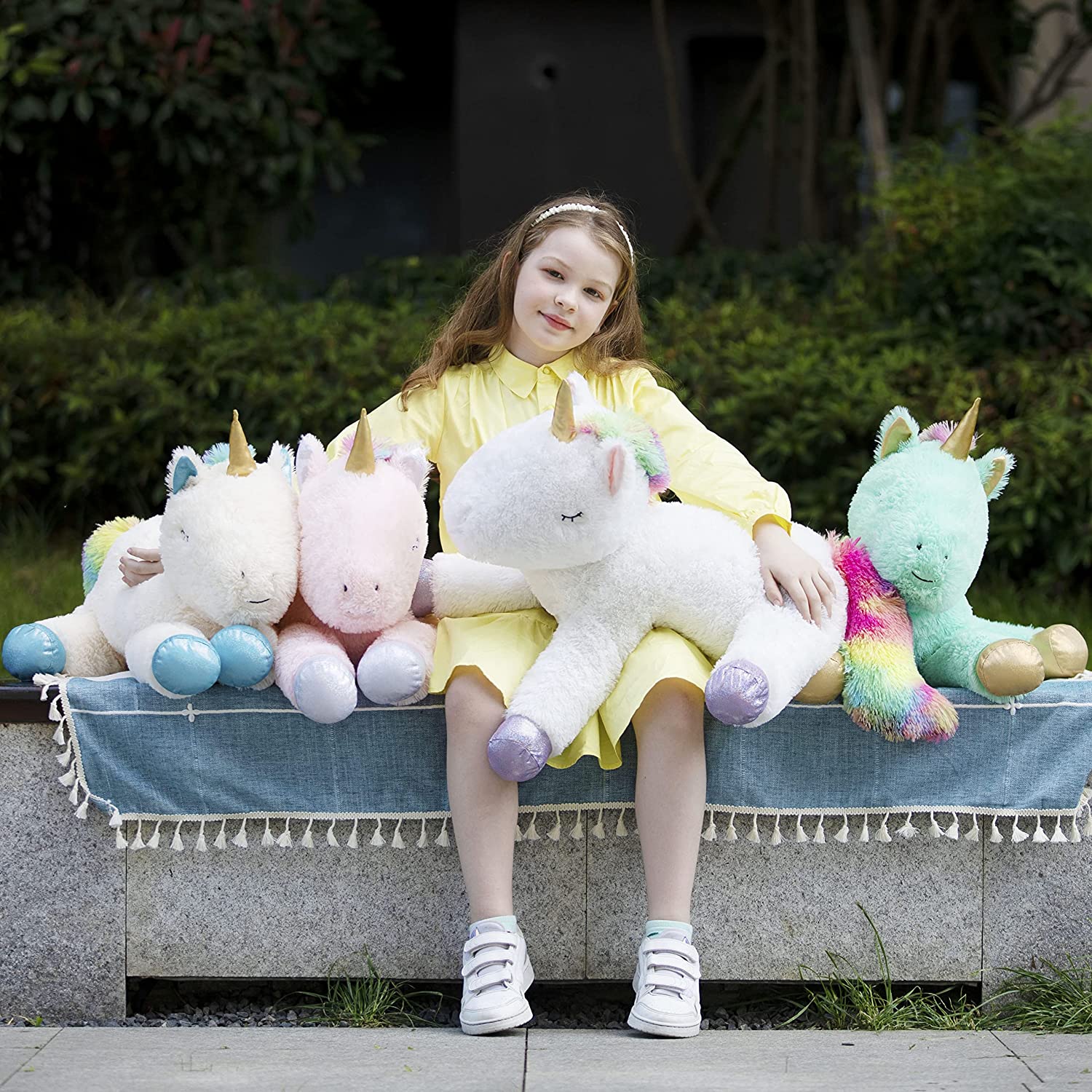 - YOU WILL RECEIVE: A super cuddly 24 inch green unicorn and four lovely 8 inch colorful little unicorns.