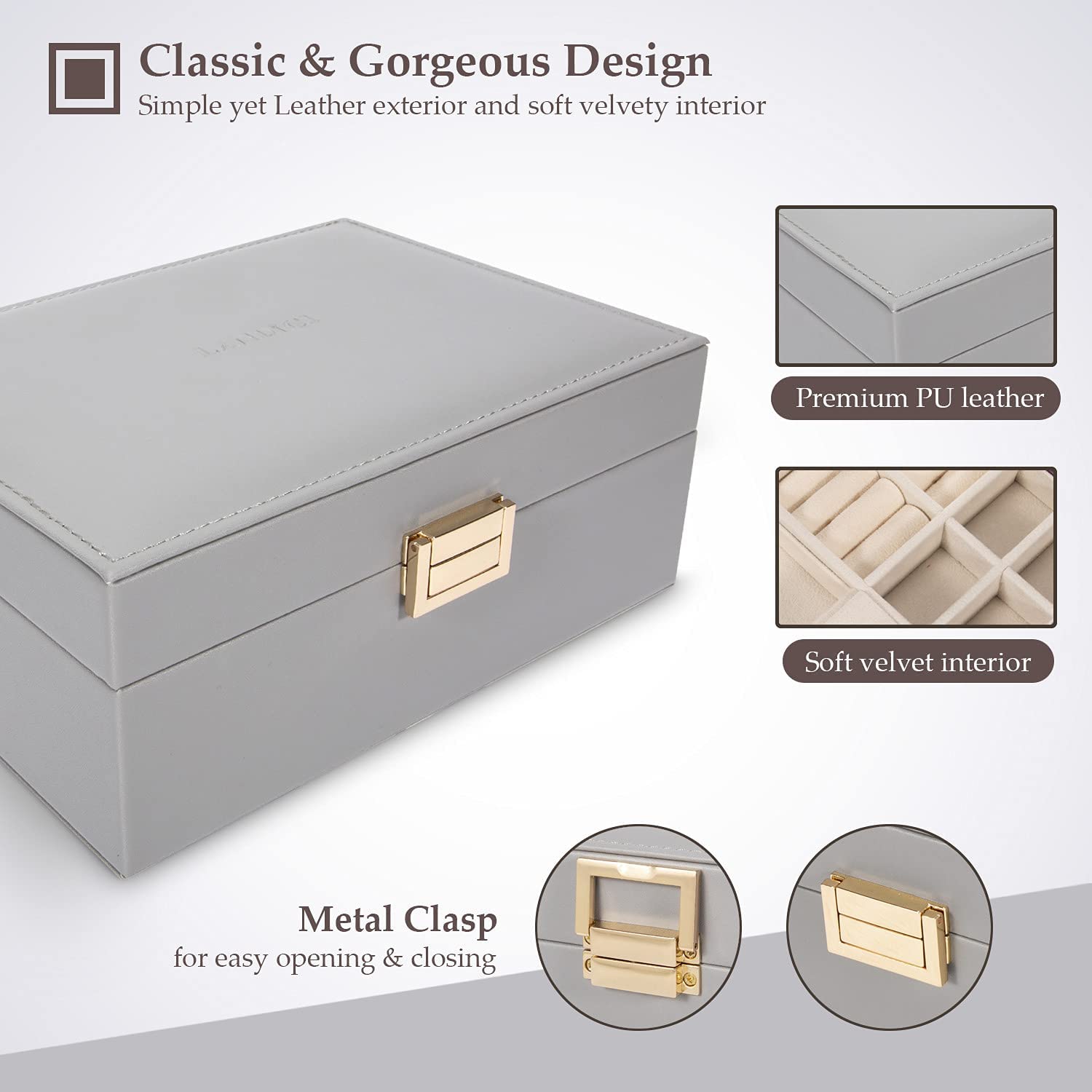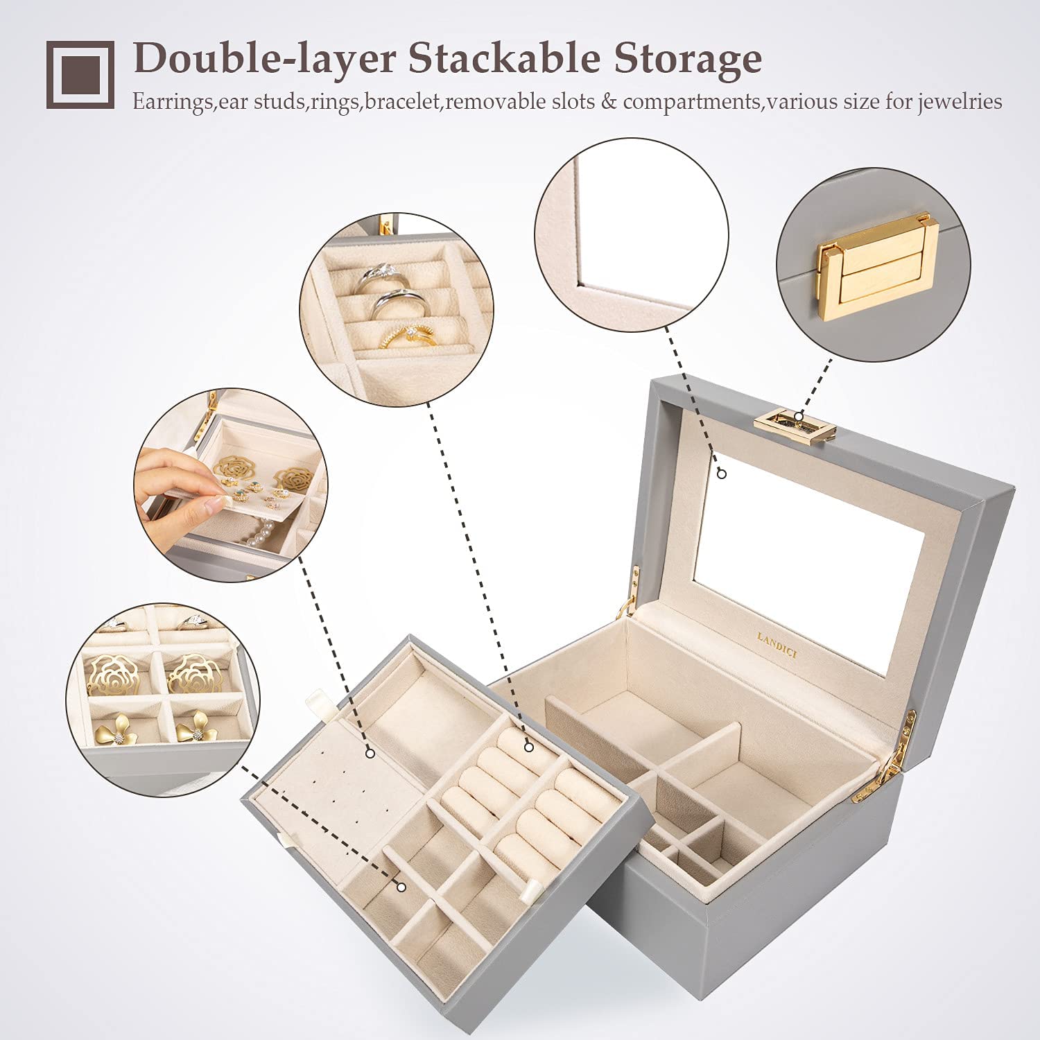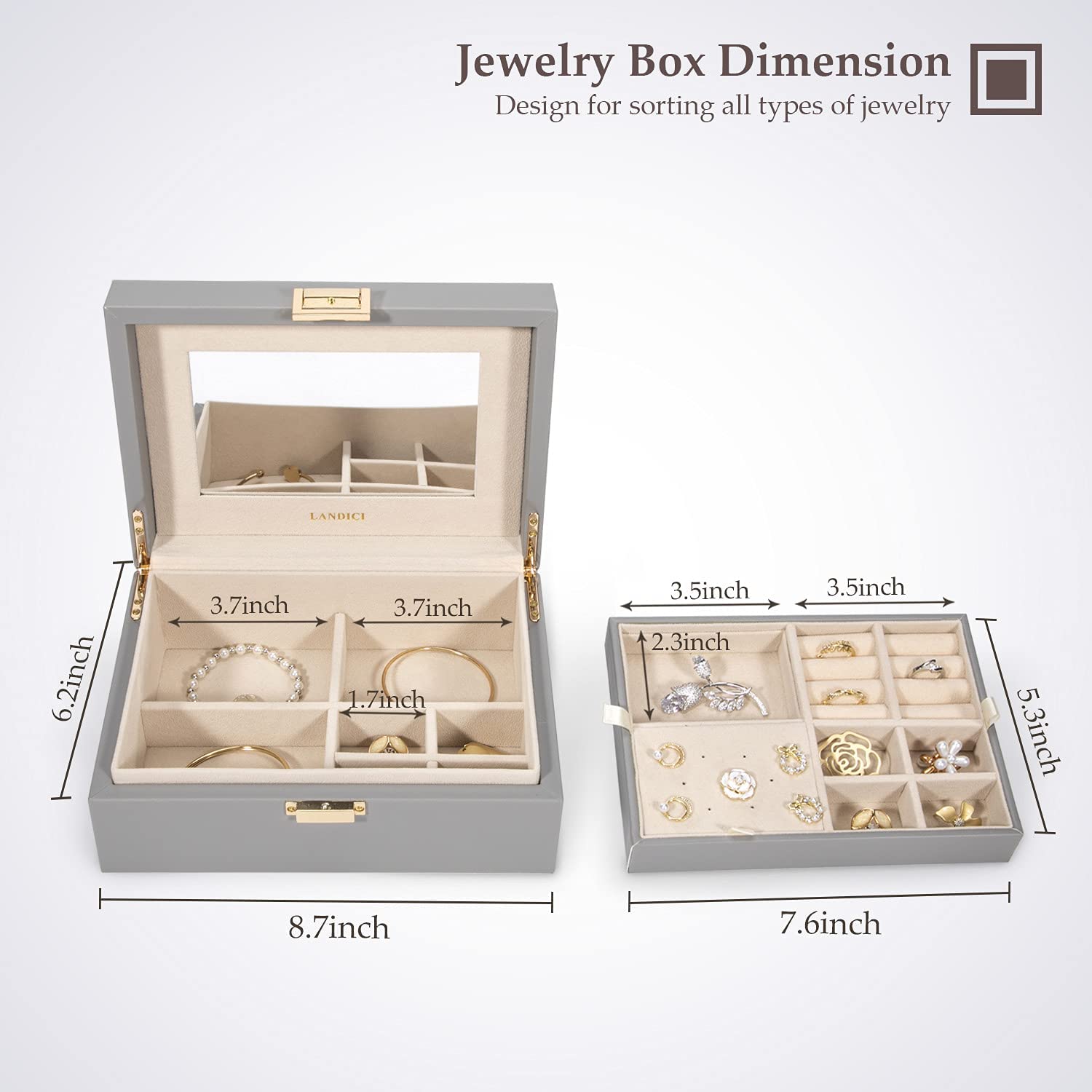 - Compact and Functional - The jewelry box is two tier you can place larger pieces at the bottom and small pieces at the top.You are able to consolidate all your pieces into one nice box if you own a ton of jewelry.It compliments any color scheme.It also comes with a key so it can keep your jewelry safe.