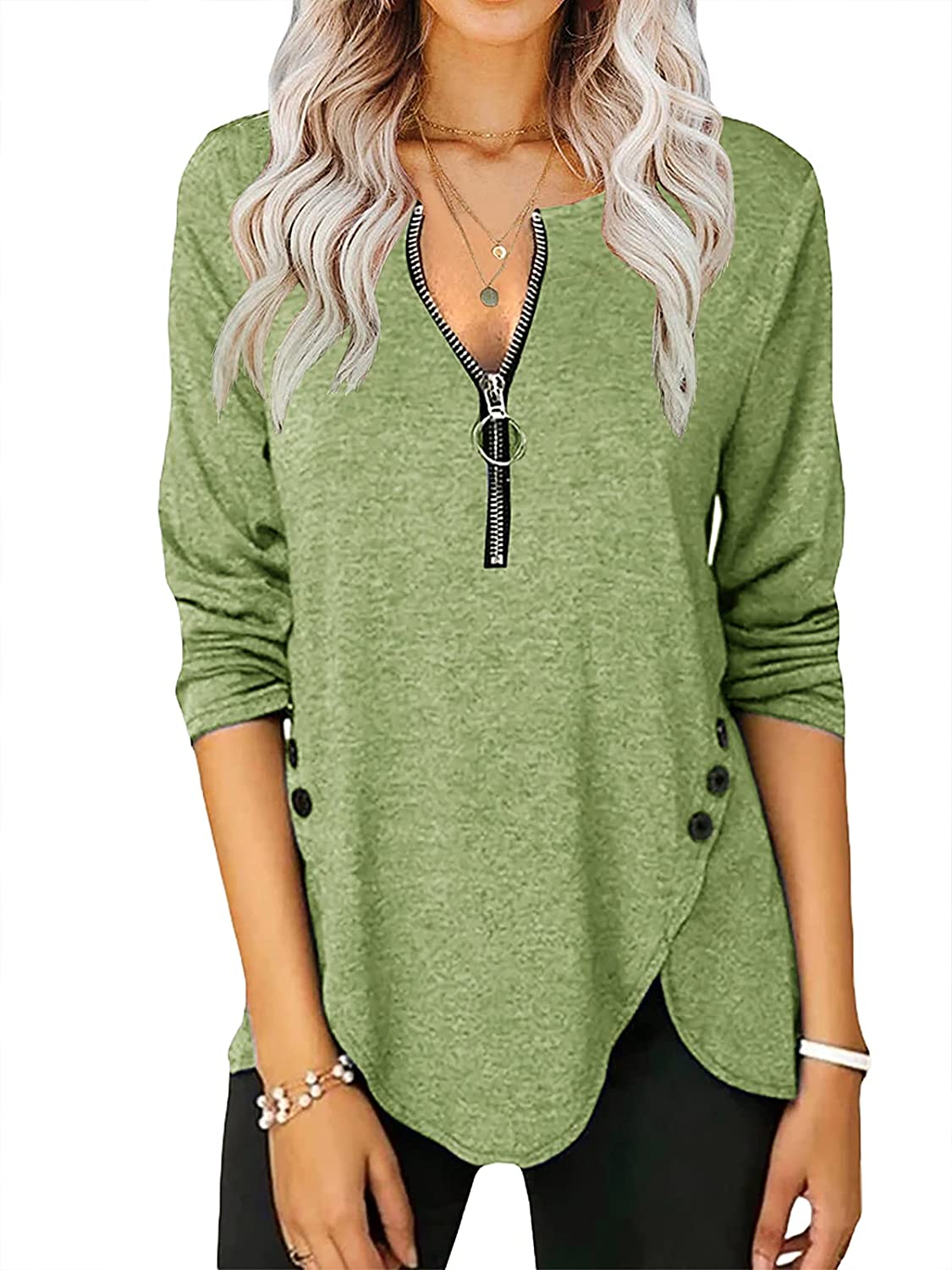 Unique Design:Long Sleeve Casual Tunic Shirt,This asymmetrical hem tunic is incredibly soft and comfortable! It classy and fun.The buttons on the side are non-functioning, but attractive.