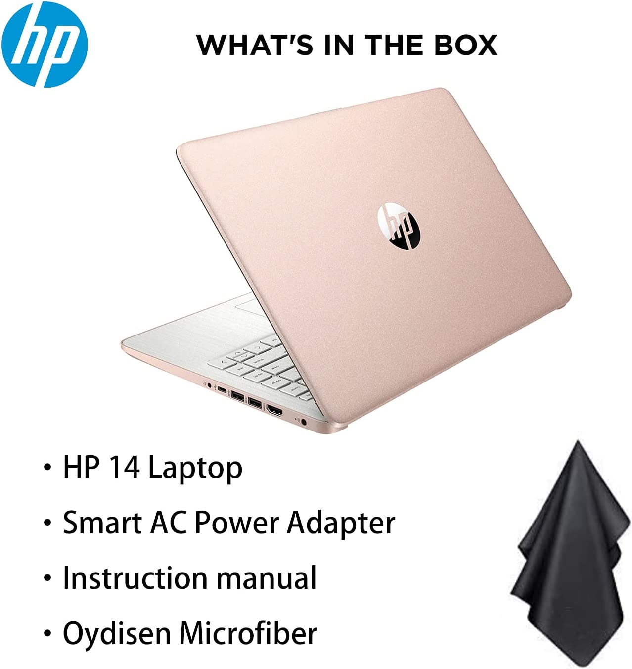 2021 Newest HP Premium 14-inch HD Laptop, Intel Dual-Core Processor Up to 2.8GHz, 16GB RAM, 64GB eMMC Storage, Webcam, Bluetooth, HDMI, Wi-Fi, Rose Gold, Windows 10 with 1 Year Microsoft 365