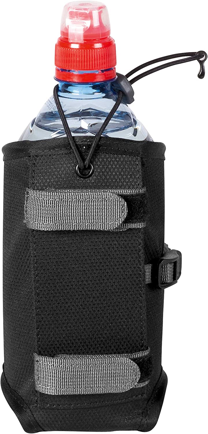 Lightweight bottle holder, which can be mounted on a backpack hip belt or shoulder strap using hook and loop fastener or an open compartment. Can be adjusted to the size of the bottle. Suitable for max. 1-liter bottles.