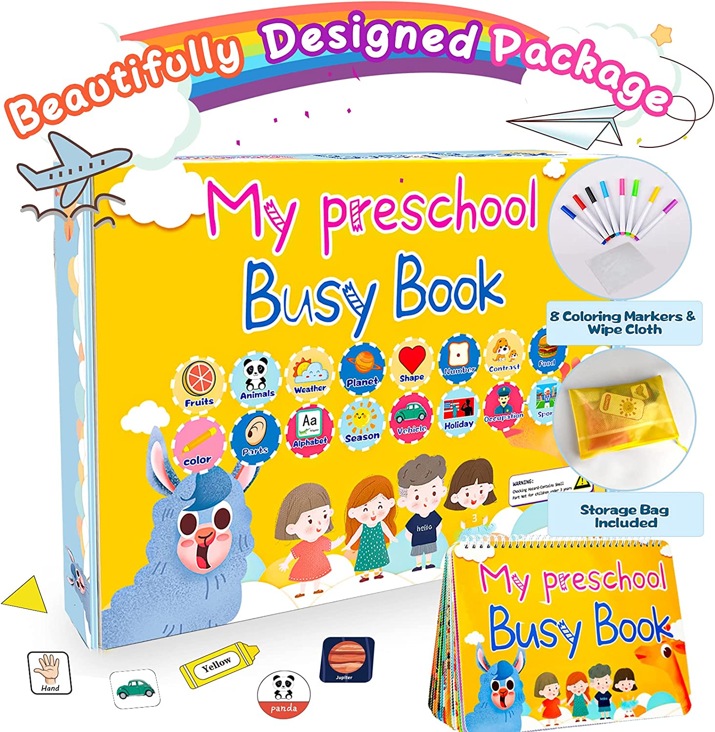 • 【MEGA PACK WITH COLOR PENS】Value pack now comes with color pens, the toy includes 16 daily activity themes like colors, letters, numbers, shapes, size, holiday, and 16 blank themes on the back so kids can draw on them as well