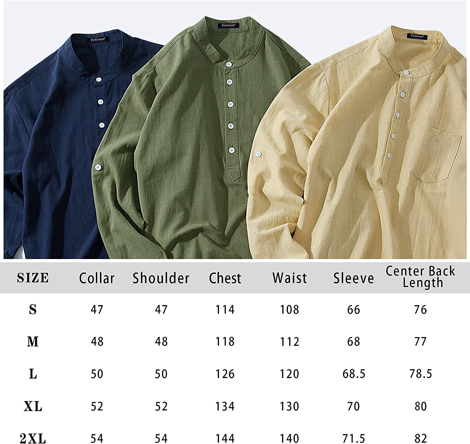 【DESIGN】: Casual hippie beach linen shirt, simple style, long-sleeved collarless, rolled sleeves, 5 front buttons, a real pocket, solid color, round hem, loose fit and lightable.