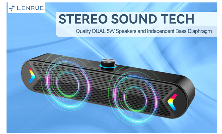 - Stereo and Noiseless:The PC speaker uses upgraded 2x5W technology to deliver the clear and crystal sound .The soundbar speaker can enhance your listening experience when you enjoying indoor movies, videos, music and games.