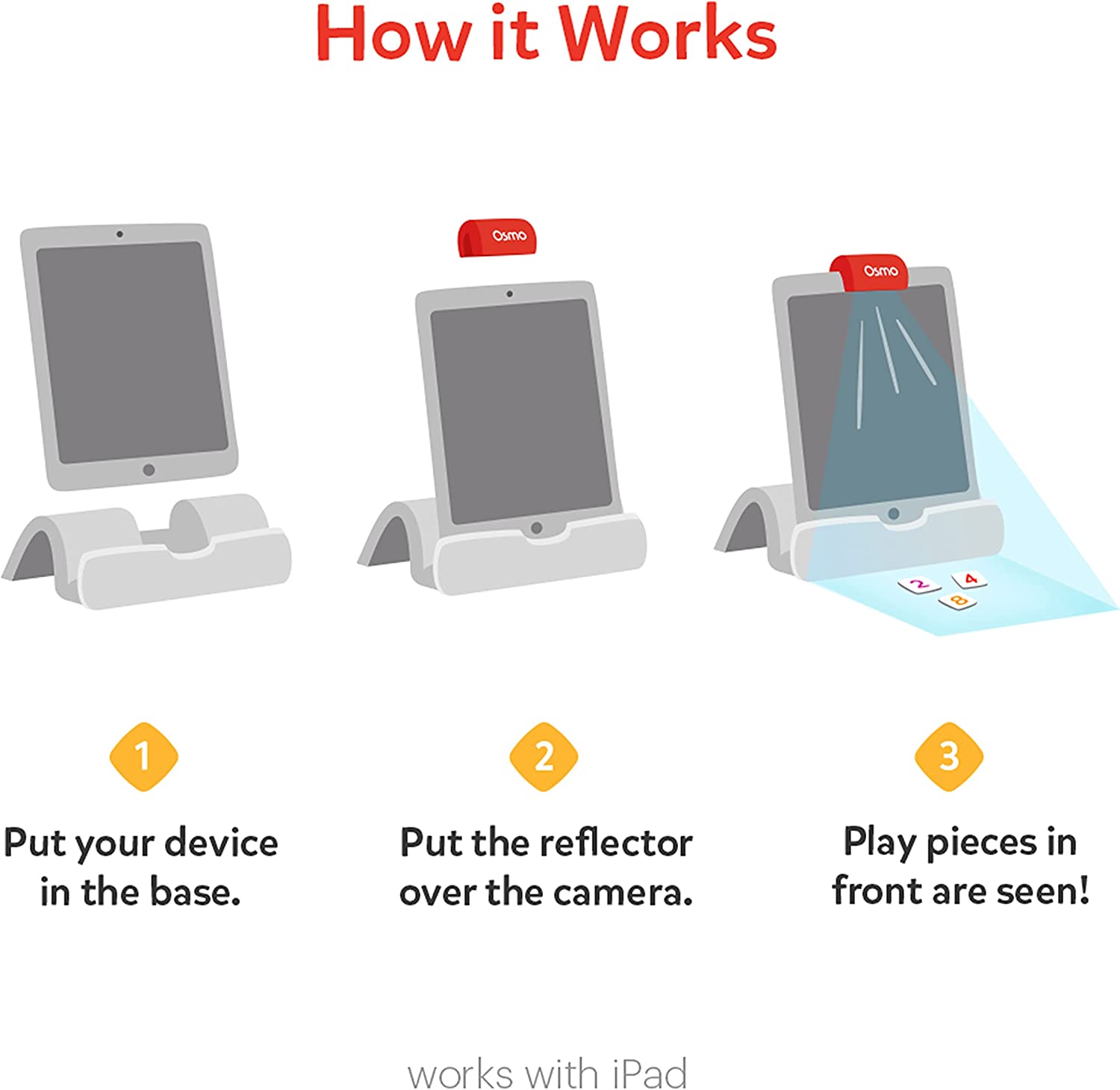 - Actual product packaging may vary from the image displayed. Components within the box remain the same. OSMO IS MAGIC: Fun-filled & award winning learning games. Children interact with actual hand held pieces & an iPad, bringing a child's game pieces & actions to life (No WiFi necessary for game play). An Osmo Base is included, an iPad is not included, both are required for game play.
