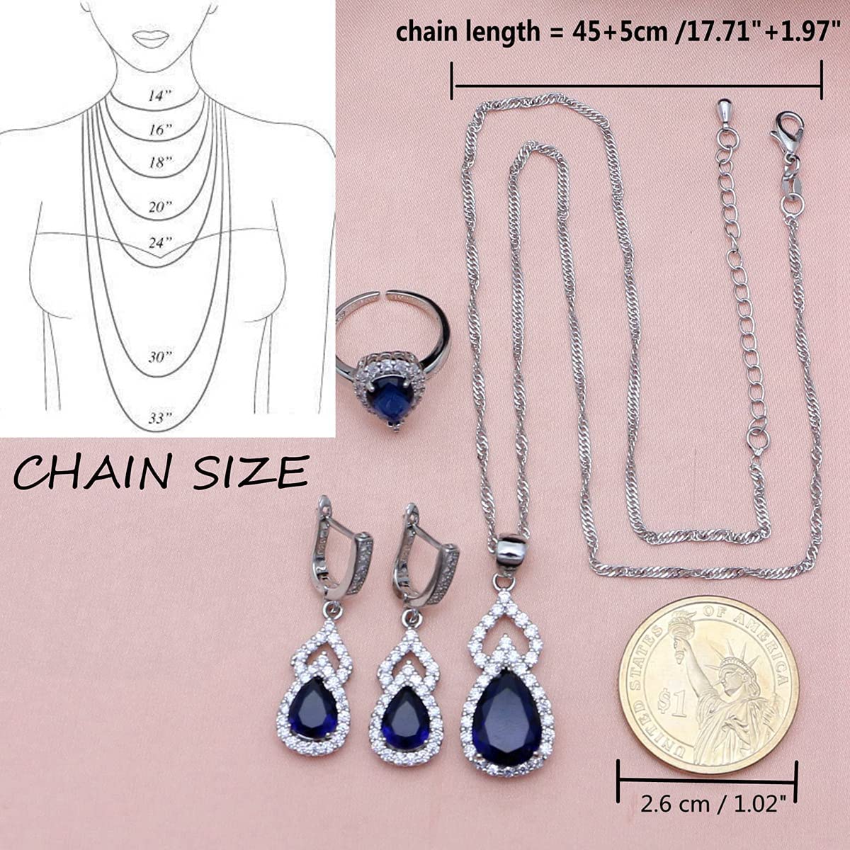 ❤What You Get: ❤ 1 gift package includes 1 piece bracelet, 1 pair dangle earring and 1 piece of pendant necklace, 1 Adjustable ring (You can adjust the ring size by yourself, no need to measure),1 complete jewelry set for your matching needs, suitable for most women.
