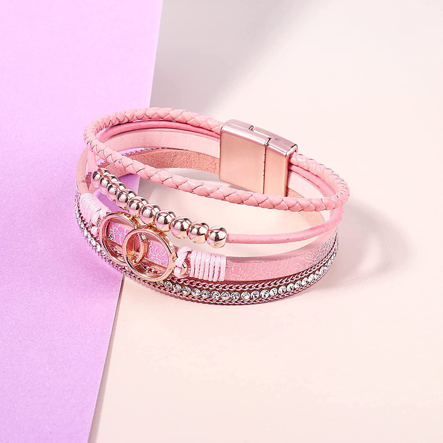 Layered Bracelets: The rose gold infinity circles, rose gold beads and shinny rhinestone are telling “The love between us is forever”.