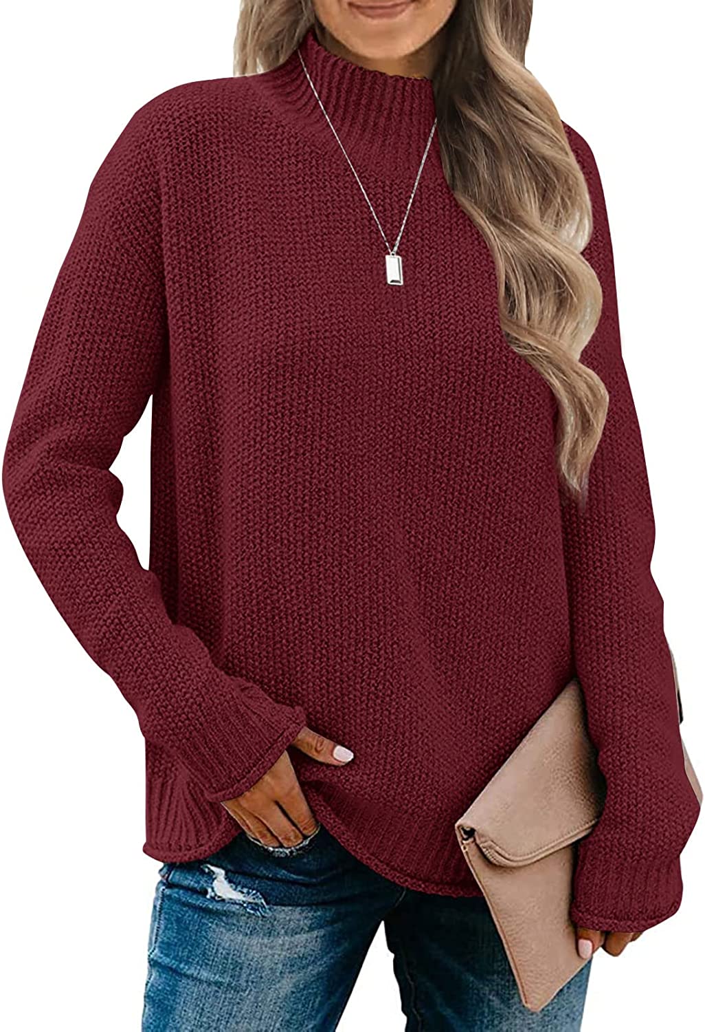 MEROKEETY Women's Long Sleeve Turtleneck Cozy Knit Sweater Casual Loose Pullover Jumper Tops
