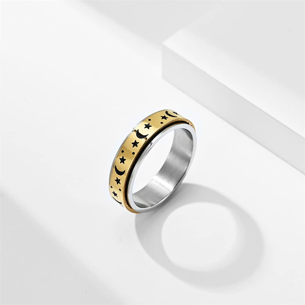 Black Moon Star Rotatable Titanium Stainless Steel Fidget Band Rings for Women Men Boys Teen Girls Dainty Anti Anxiety Stress Relief Spinner Rings Minimalist Statement Promise Couple Rings for Boyfrie