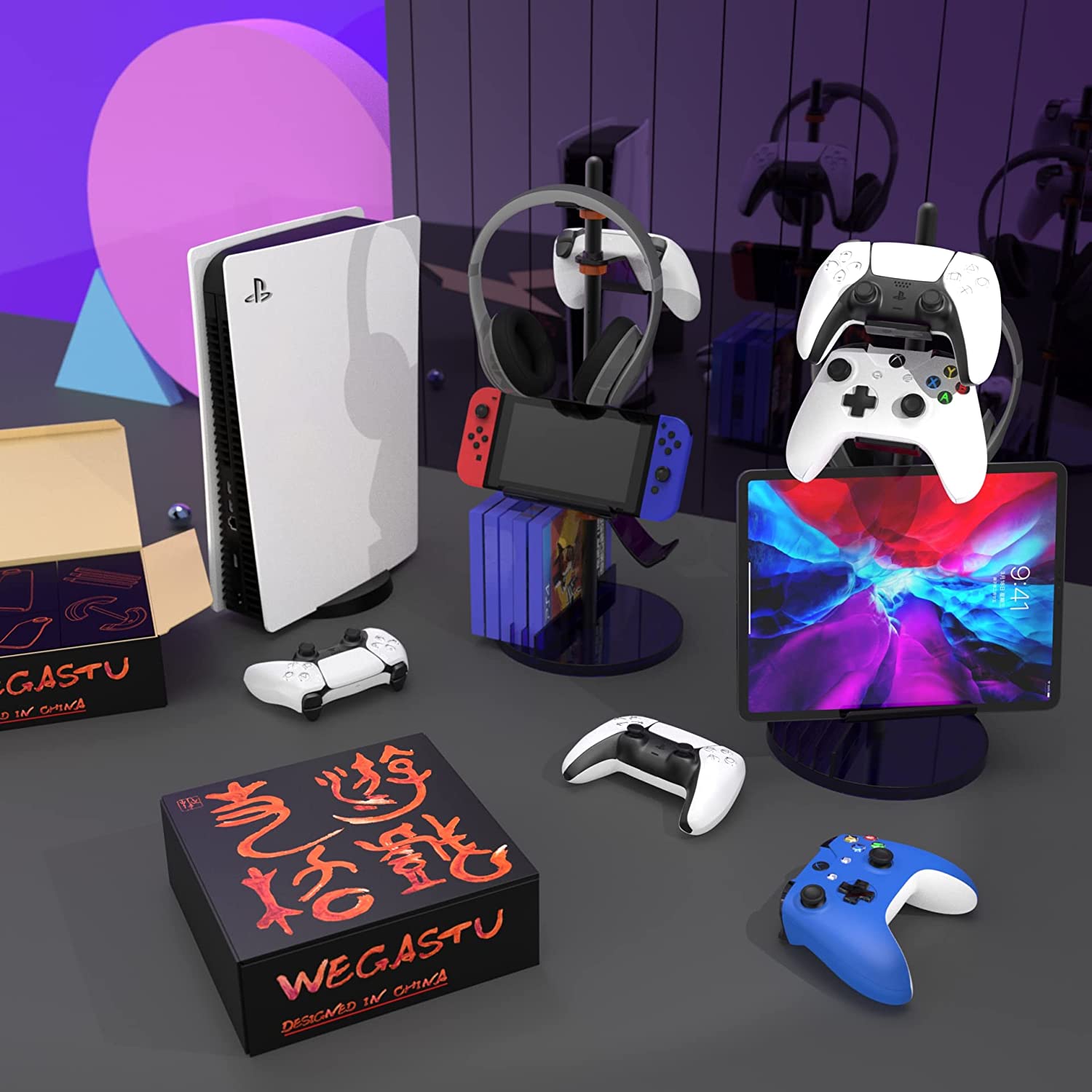 - 【HIGH SPACE UTILIZATION】This headphone stand can place headphone,ipad ,CD, game CD, PS5,game controller in a certain space.This stand will have a better display effect.