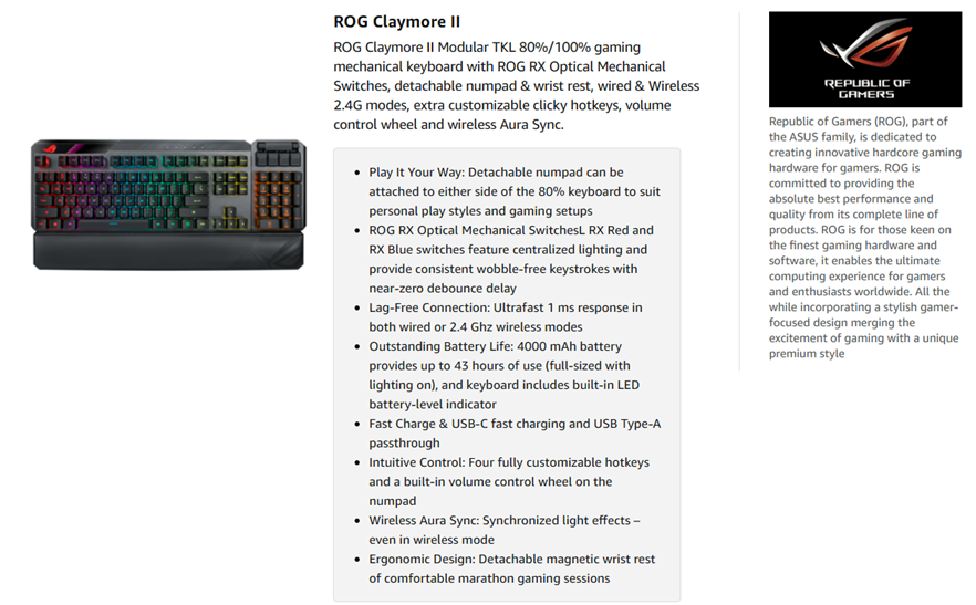 | Item model number | MA02 ROG CLAYMORE II/RD/US |