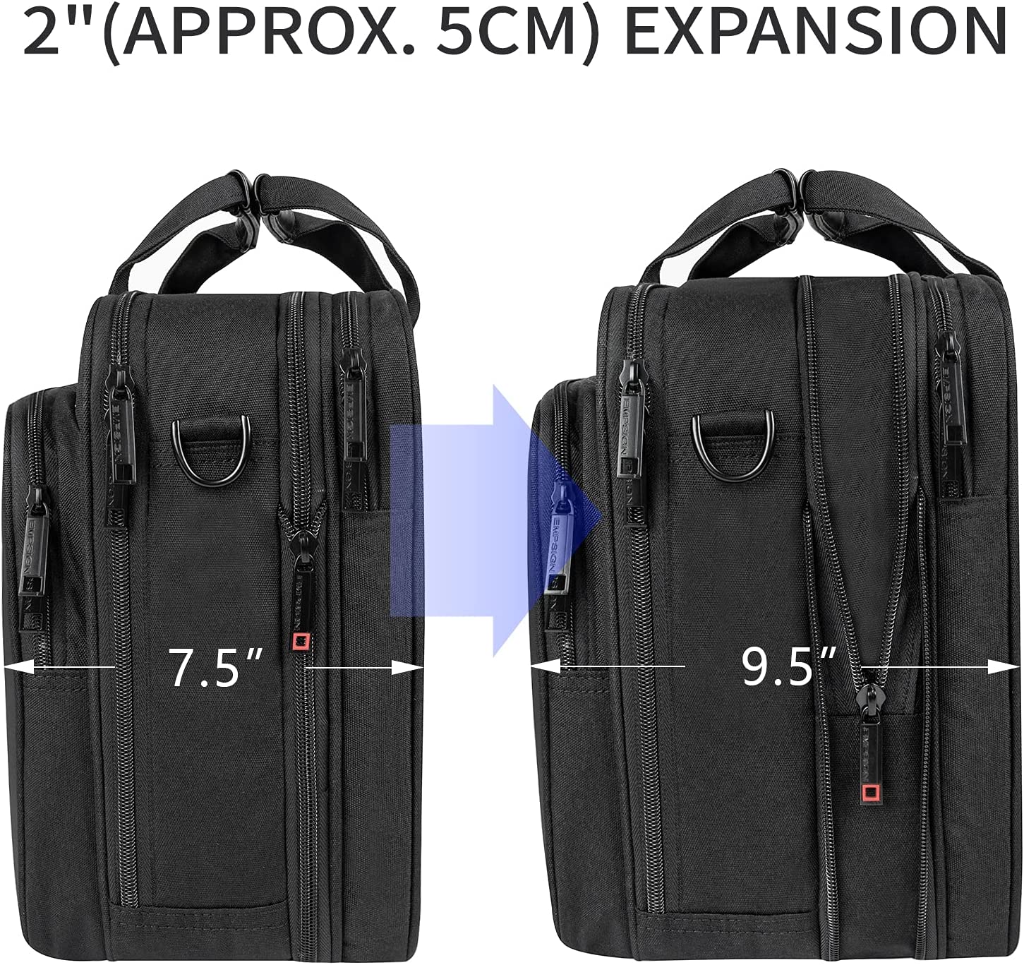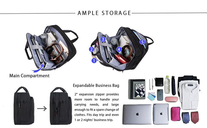 - Expandable Business Bag: 2" expansion zipper provides more room to handle your carrying needs, and is large enough to fit a spare change of clothes. Suits day trip and even 1 or 2 nights' business trip.
