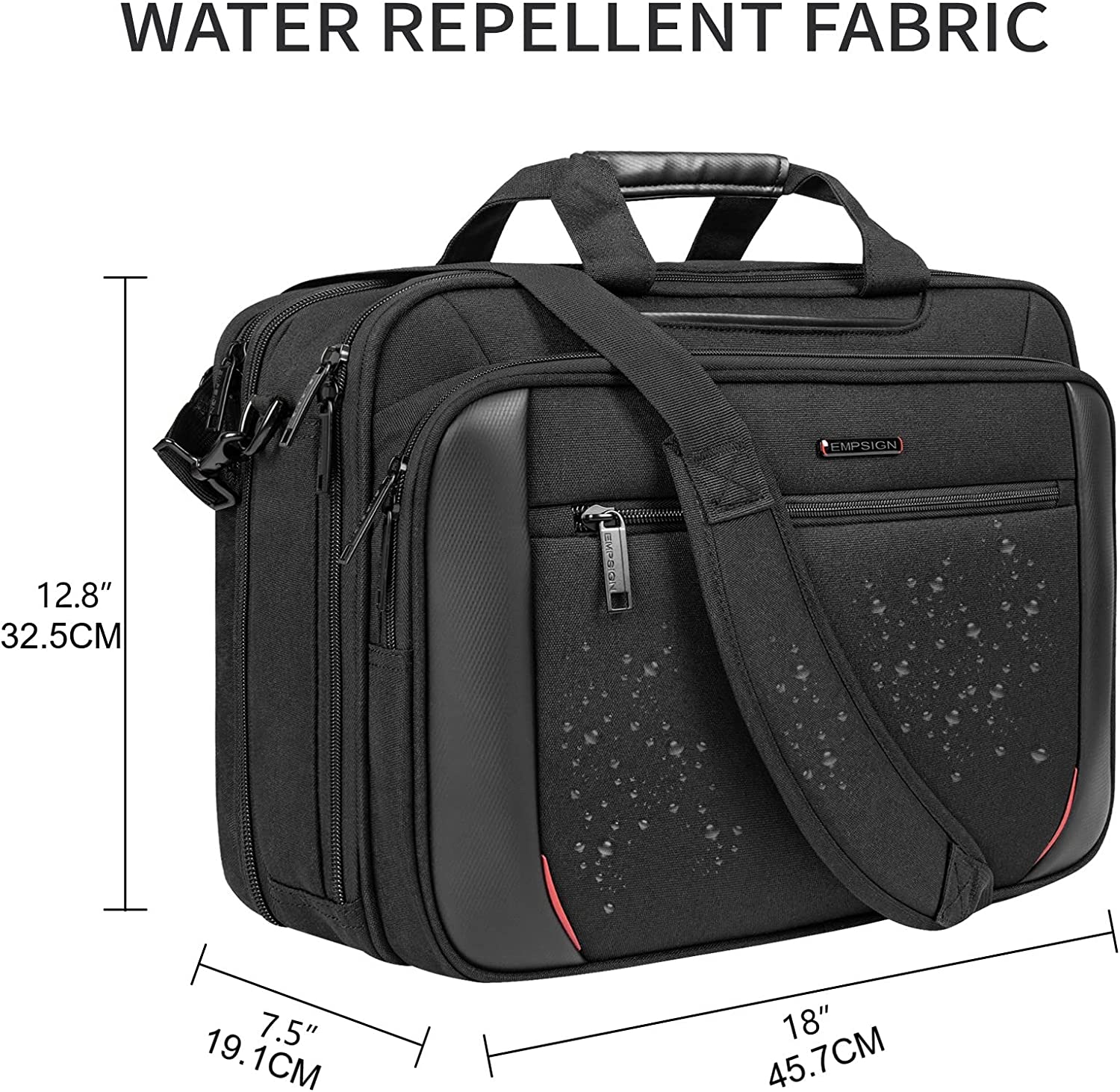 - DURABLE & WATER REPELLENT: Sturdily constructed of durable, wear-resistant poly canvas material, EMPSIGN laptop case guarantees exceptional long term use. Water repellent fabric protects your accessories from accidents, in the snow, as well as in the light and medium rain. Dimensions: 18”x12.8”x7.5”/9.5” Weight: 2.88 LBS. Compatible with laptops 17.3" and under.