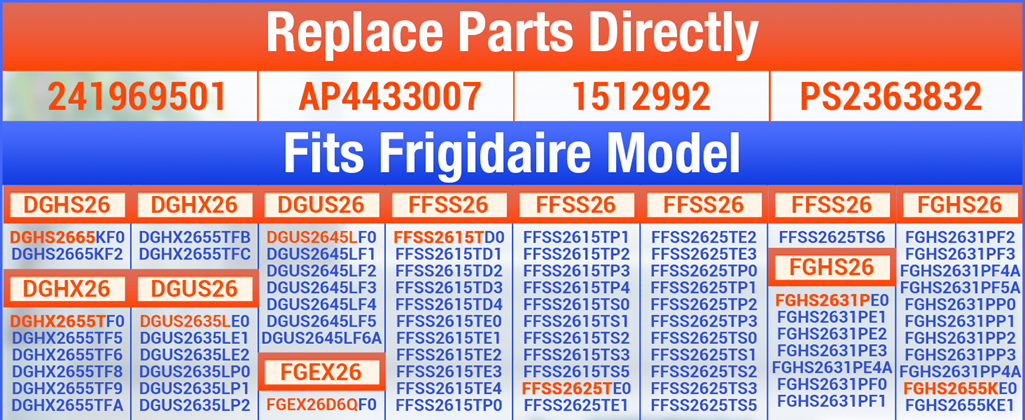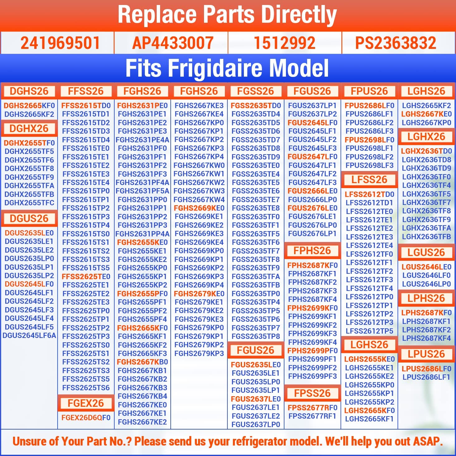 - 【Part #241969501】Compatible with Frigidaire Refrigerator Model Series DGHS26,DGUS26,FGEX26,FGHS26,FGUS26,FPHS26,FPSS26,FPUS26,LGHS26,LGUS26,LPHS26,LPUS26,DGHX26,FFSS26,FGSS26,LFSS26,LGHX26 etc.