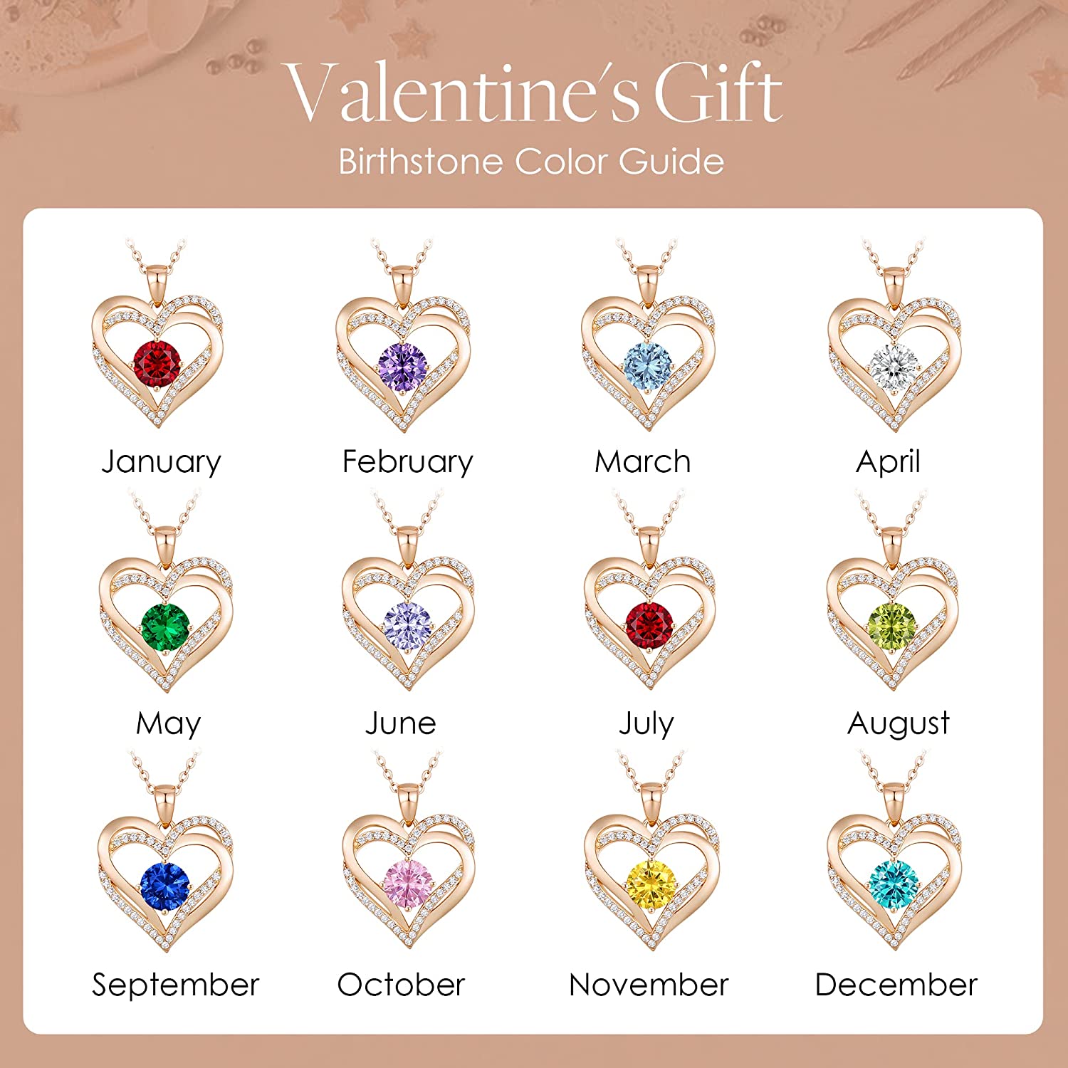 ♥️【FOREVER LOVE HEART NECKLACE】The double-heart design symbolizes love for each other, and no words are needed between the two hearts. The love heart birthstone necklace with a gemstone pendant makes your relationship stronger and is the good choice to express your love for her on special day. A BRAVE HEART WITH YOU FOR ALWAYS AND FOREVER !