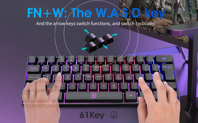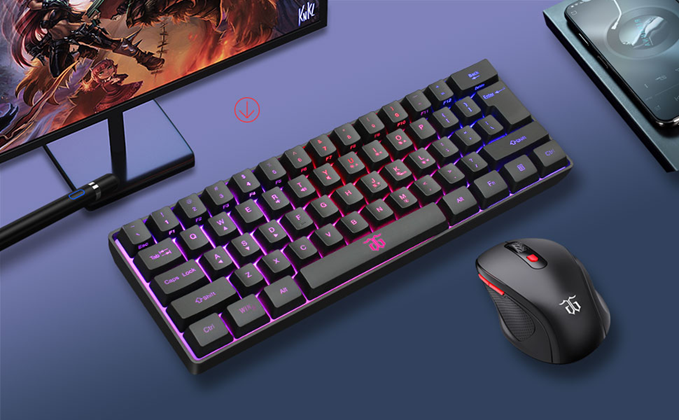 - 【Small Gaming keyboard and Mouse Combo】The scientific choice is a wireless compact 60% keyboard and a cute pocket-sized mouse, which strives to create a perfect combination of gaming and office. Slim and lightweight design makes it not occupy much space and provide convenience for travel.
