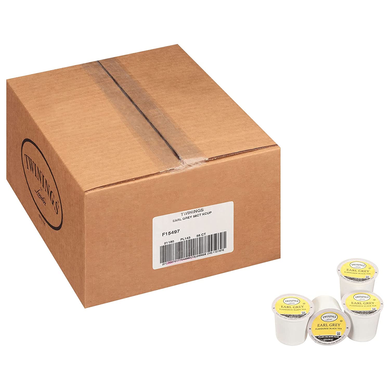 EARL GREY TEA K-CUP PODS: One box of 56 Keurig Tea Pods; Fresh; fragrant and flavoured with distinctive notes of citrus and bergamot; this Earl Grey tea has all the taste of the original; Caffeinated Black Tea
