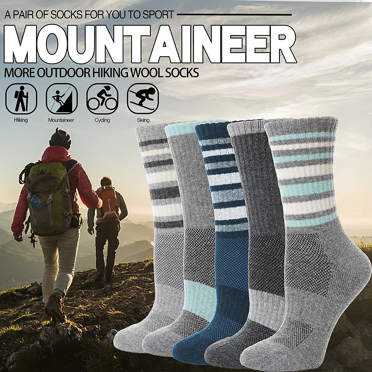 SELECTED MATERIAL - These womens hiking crew socks made of 70% MERINO WOOL, 23% polyester, 5% spandex , 2% nylon.They can keep the temperature and warm up your feet in cold weather.