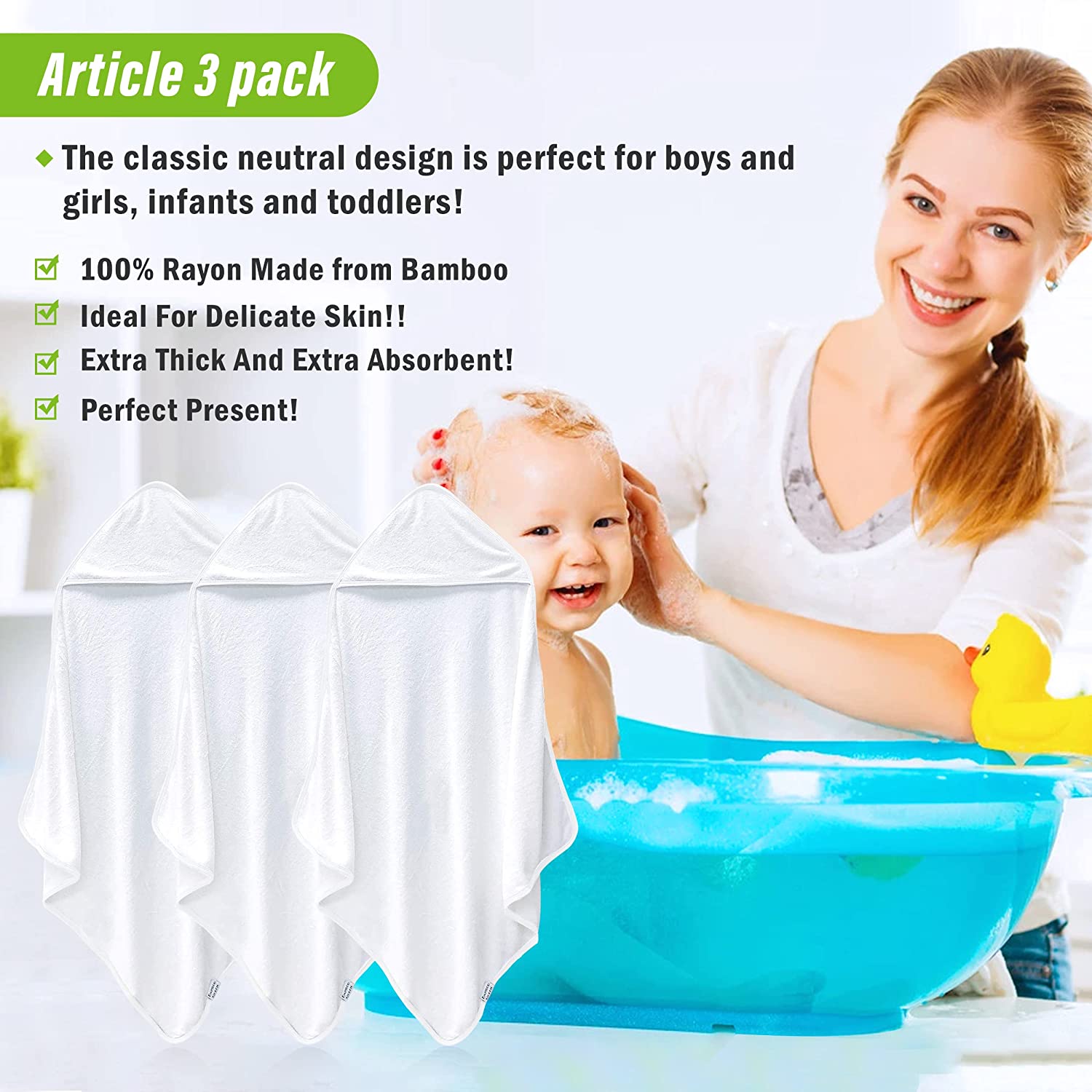 • DURABLE AND EXTRA ABSORBENT! The bamboo baby towel is extremely durable and can withstand countless washes. Drying your children quickly while also keeping them warm and cozy. Wrap your little one in soft, fluffy towel after bathing him in a tub, at the pool or beach.