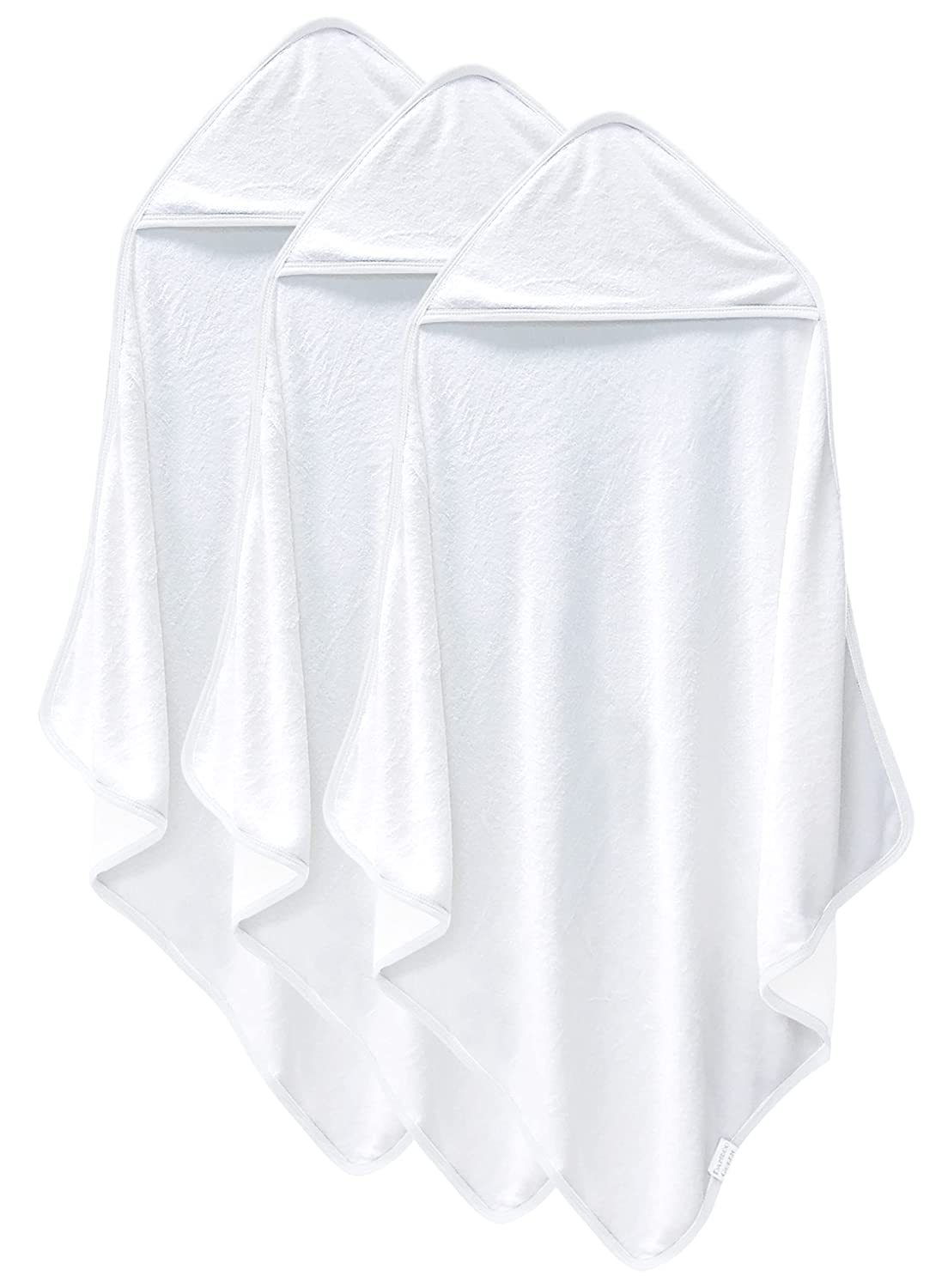 Cosy Family 3 Pack Bamboo Baby Hooded Towels, Ultra Soft Unisex Bath Towels for Babies,Toddler,Infant - Newborn Essential - Ultra Absorbent Toddler Towels for Baby Boy Girl - White