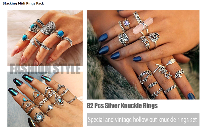❤Material❤ These stacked rings use alloy materials, silver plated, high polished, it's comfortable to wear, don't worry about harm your fingers. With Bohemian style, vintage design, crystal, fashion carved, it is worth buying. They will make your fingers look more elongate, more beautiful. The rings of various designs can be randomly combined. It makes you very personal.