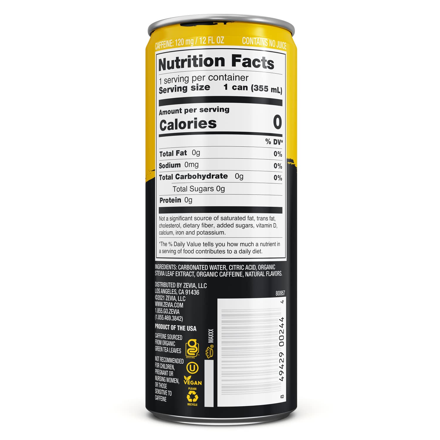 Low Calorie Energy Drink: Whether it’s before or after your workout or keeping up with the kids, power up with a can of Zevia Energy packed with 120 mg of organic caffeine