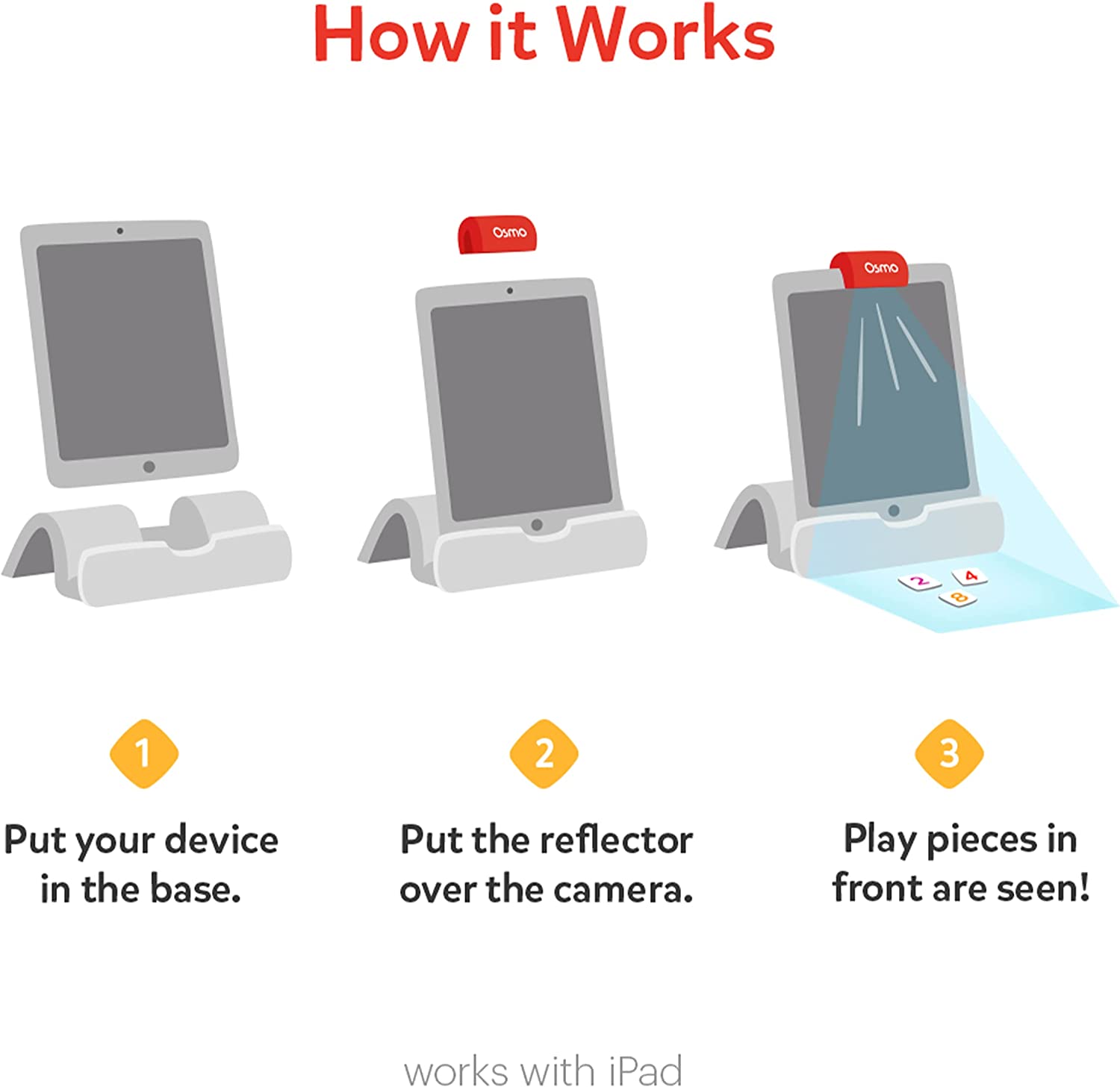 - Now available on iPhone devices. Actual product packaging may vary from the image displayed. Components within the box remain the same. OSMO IS MAGIC: Fun-filled & award winning learning games. Children interact with actual hand held pieces & an iPad, bringing a child's game pieces & actions to life (No WiFi necessary for game play). An Osmo Base is included, an iPad is not included, both are required for game play..Ideal for ages:5 years and up