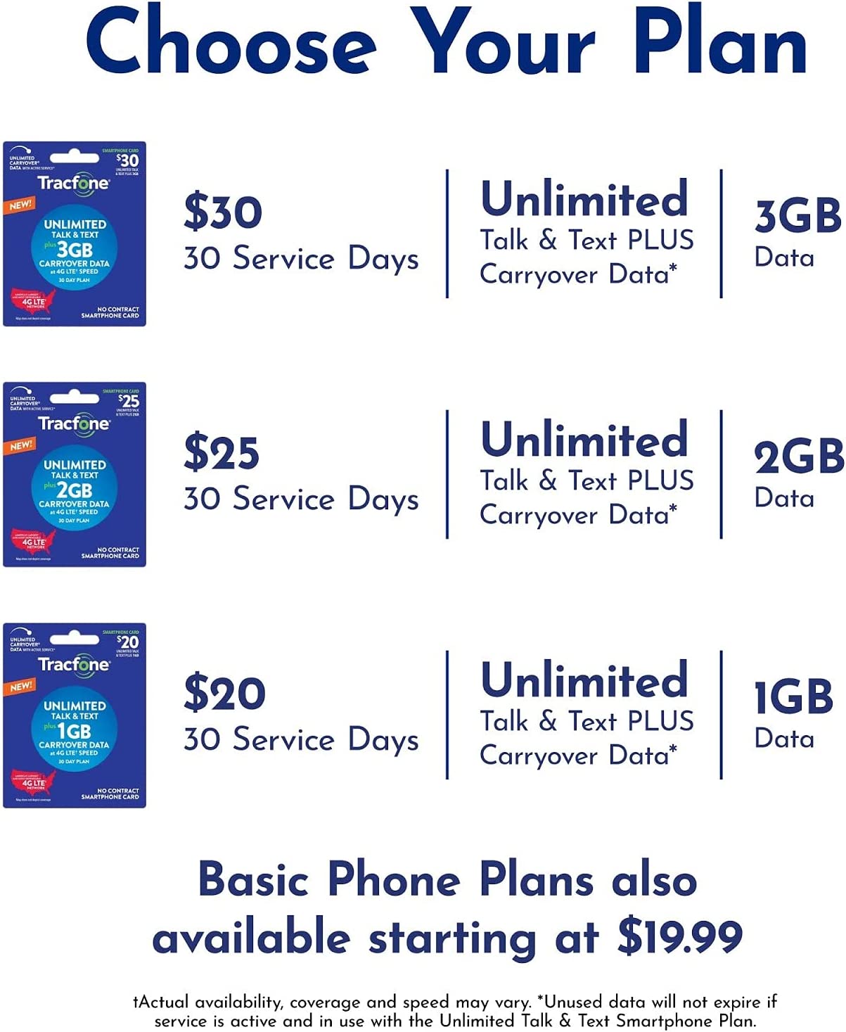 Unlimited Talk, Text and Data plans starting as low as dollar 20/month