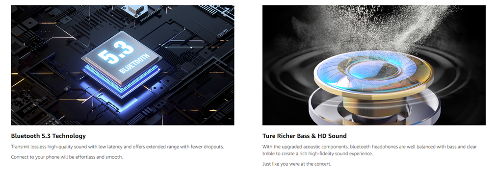 - [Stable Bluetooth V5.3 Connection] Adopting the latest Bluetooth 5.3 technology, CSR chip and superior acoustic component, ensures faster and more stable connection. Boean wireless headphones up to 30ft Bluetooth range in the open space and 10ft in the obstacles space.