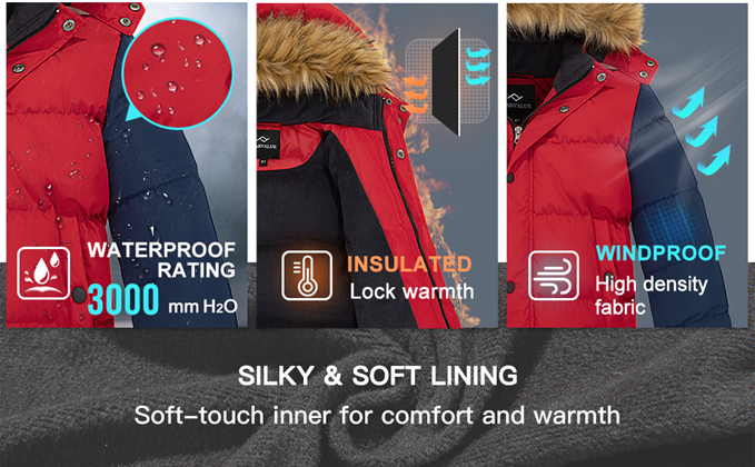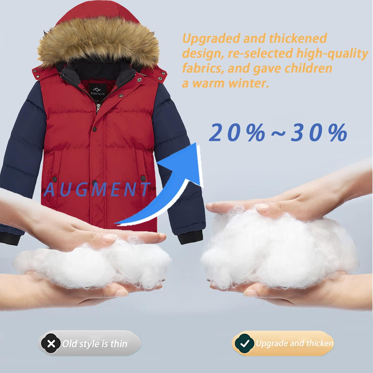 Upgraded Thermal Winter Jacket: (1) Upgraded to a thick soft fleece lining that is thick and smooth for maximum warmth. (2) Upgraded high-quality insulating cotton pads keep your kids warm.