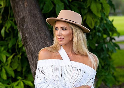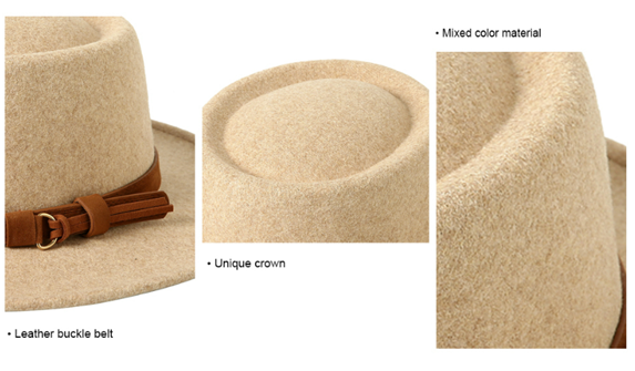 Lanzom Women Retro Felt Panama Hat with Belt Buckle Wool Wide Brim Fedora Hat