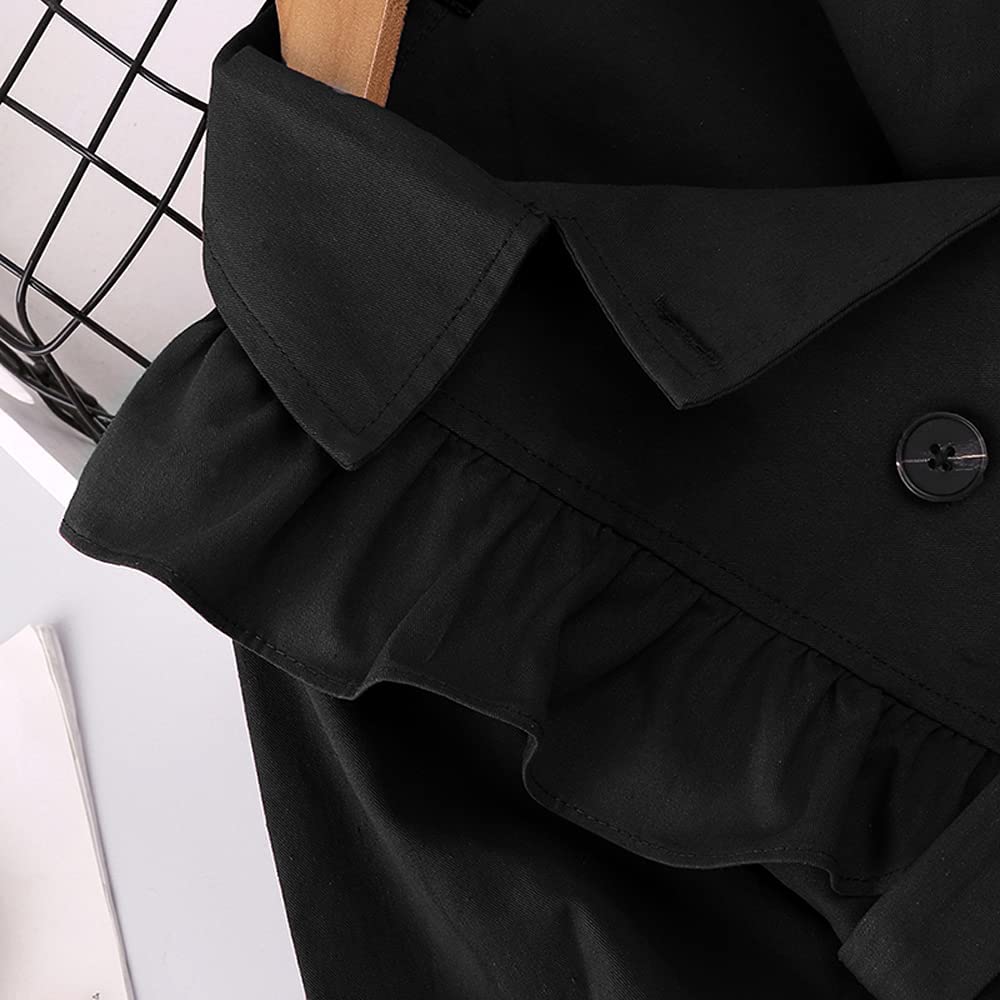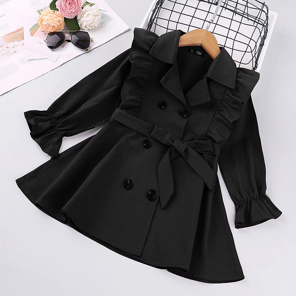 Feature: This baby girl's trench coat is button-down closure. Adjustable bow belt. Please notice that the jacket doesn’t have any belt loops to hold the belt. The tie around the waist is removable. You can also open it as a coat. Ruffle long sleeve. Elastic cuffs, Give your princess plenty of space to grow. Playful and adorable. Make your little girl adorable and charming, never out of style. A must-have for the princess autumn/winter wardrobe