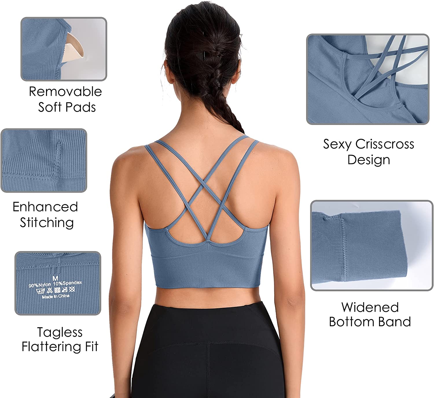 • ☀Cute Crisscross Design: These crisscross althletic bras with strappy back style always keeping your perfect shape. Strappy bralettes look very beautiful with high waist leggings, workout pants or the top with high waisted jeans and accessories as well!