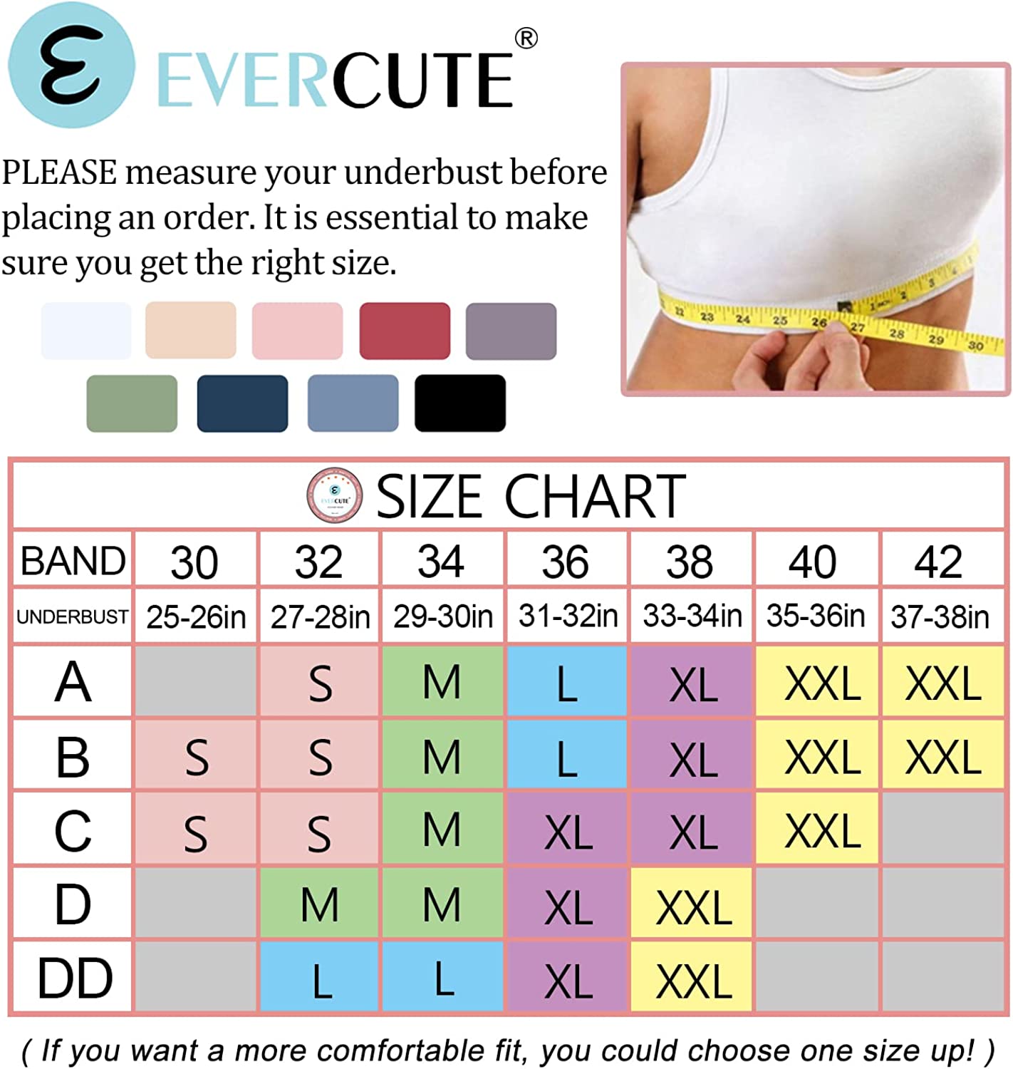 • ☀Multiple Colors Package For Choose: Our active cute sports bras for women have many colors. You can select 2 pack, 3 pack,4 pack and 5 pack according to you need. Kindly Note: S fits for 30B 30C 32A 32B 32C ; M fits for 32D 34A 34B 34C 34D ; L fits for 32DD 34DD 36A 36B ; XL fits for 36C 36D 36DD 38A 38B 38C ; XXL fits for 38D 38DD 40A 40B 40C 42A 42B. ( *Warm Tip: Hand wash and air dry is recommended for longer life of the fabric*)